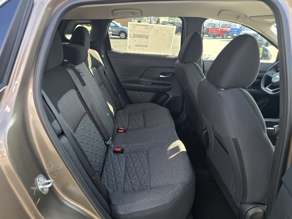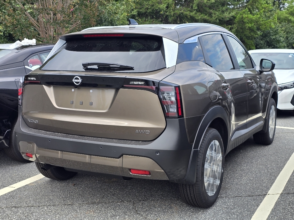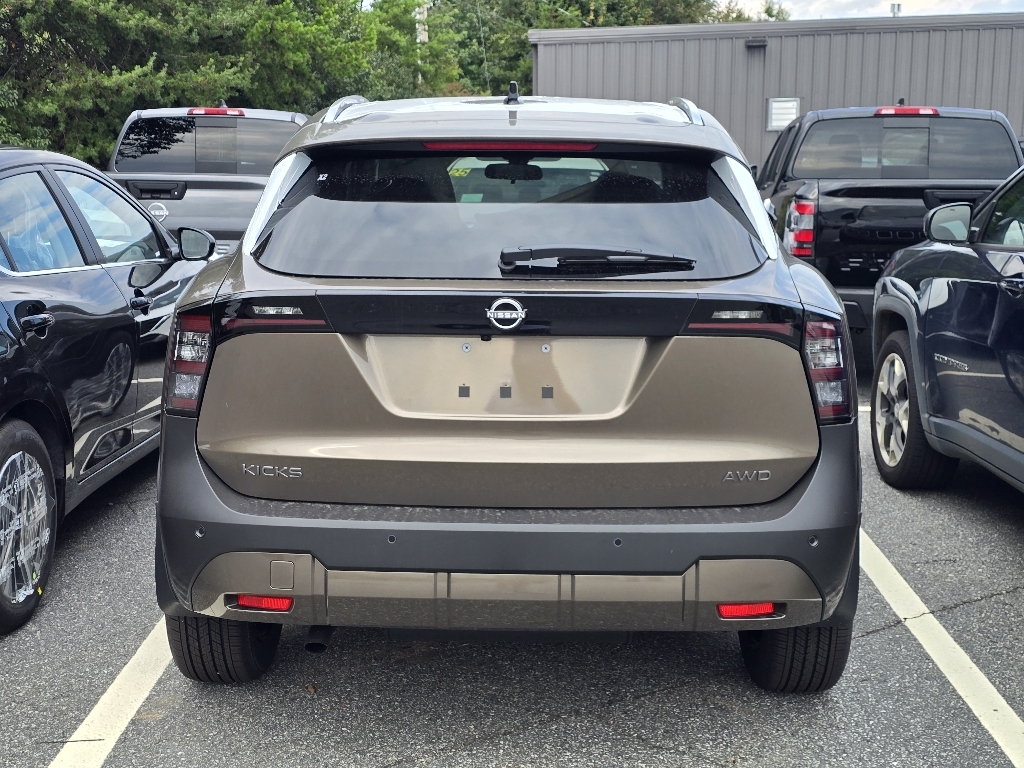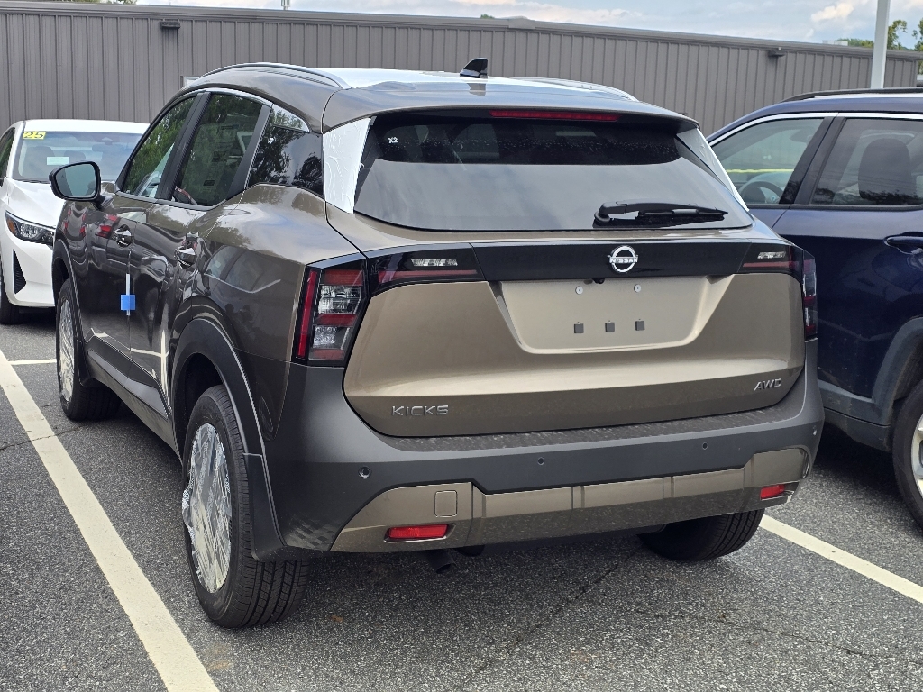 Canyon Bronze Metallic 2026 Nissan Kicks SV AWD CVT with Xtronic 2.0L DOHC INFORMATION ABOUT THIS VEHICLE AND ITS FEATURES:, ABS brakes, Active Cruise Control, Alloy wheels, Electronic Stability Control, Emergency communication system, Illuminated entry, Low tire pressure warning, Remote keyless entry, Traction control. ABS brakes, Active Cruise Control, Alloy wheels, Electronic Stability Control, Emergency communication system, Illuminated entry, Low tire pressure warning, Remote keyless entry, Traction control, 17Alloy Wheels, 4 Speakers, 4-Wheel Disc Brakes, Air Conditioning, AM/FM radio, Auto High-beam Headlights, Automatic temperature control, Blind Spot Warning, Brake assist, Bumpers: body-color, Cloth Seat Trim, Driver door bin, Driver vanity mirror, Dual front impact airbags, Dual front side impact airbags, Exterior Parking Camera Rear, Four wheel independent suspension, Front anti-roll bar, Front Bucket Seats, Front Center Armrest, Front reading lights, Fully automatic headlights, Knee airbag, NissanConnect featuring Apple CarPlay and Android Auto, Occupant sensing airbag, Outside temperature display, Overhead airbag, Panic alarm, Passenger door bin, Passenger vanity mirror, Power door mirrors, Power steering, Power windows, Radio data system, Radio: AM/FM/SiriusXM Audio System, Rear anti-roll bar, Rear reading lights, Rear side impact airbag, Rear window defroster, Rear window wiper, Security system, Speed control, Speed-sensing steering, Split folding rear seat, Spoiler, Sport steering wheel, Steering wheel mounted audio controls, Tachometer, Telescoping steering wheel, Tilt steering wheel, Trip computer, and Variably intermittent wipers. 27/34 City/Highway MPG Price includes: $1000 - Nissan Customer Cash. Exp. 03/02/2026