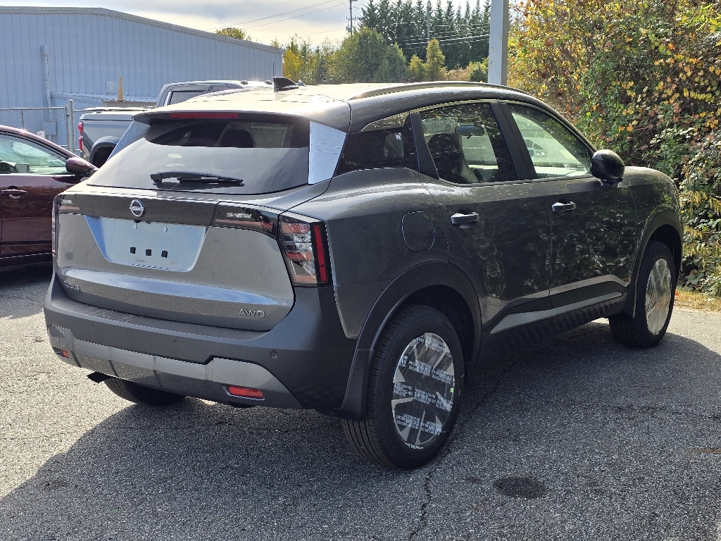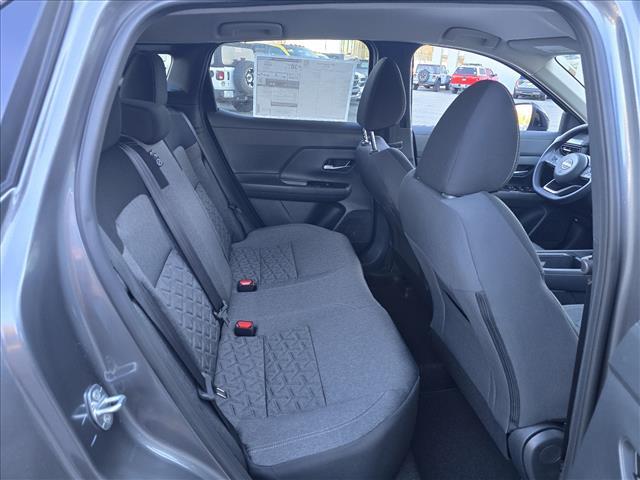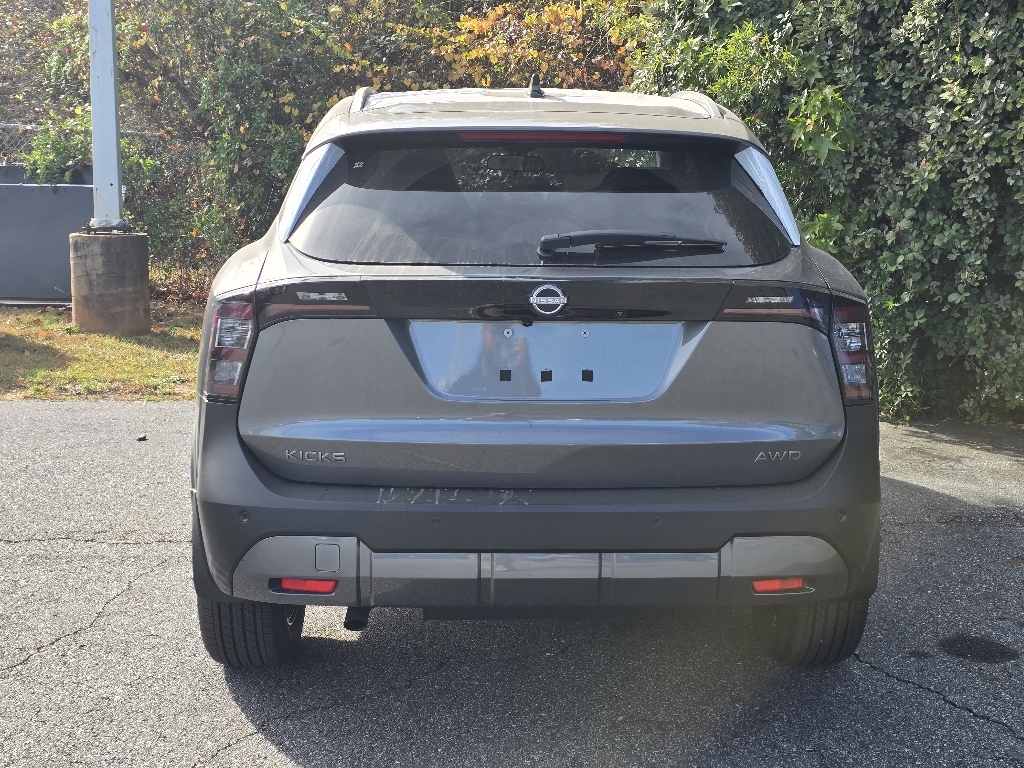 Gun Metallic 2026 Nissan Kicks SV AWD CVT with Xtronic 2.0L DOHC INFORMATION ABOUT THIS VEHICLE AND ITS FEATURES:. 27/34 City/Highway MPG Cold Weather Package (Heated Front Seats, Heated Mirrors, and Rear Floor Heater Ducts), 17Alloy Wheels, 4 Speakers, 4-Wheel Disc Brakes, ABS brakes, Air Conditioning, Alloy wheels, AM/FM radio, Auto High-beam Headlights, Automatic temperature control, AWD Cargo Mat, Blind Spot Warning, Brake assist, Bumpers: body-color, Carpeted Floor Mats, Cloth Seat Trim, Driver door bin, Driver vanity mirror, Dual front impact airbags, Dual front side impact airbags, Electronic Stability Control, Emergency communication system, Exterior Parking Camera Rear, Four wheel independent suspension, Front anti-roll bar, Front Bucket Seats, Front Center Armrest, Front reading lights, Fully automatic headlights, Illuminated entry, Knee airbag, Low tire pressure warning, NissanConnect featuring Apple CarPlay and Android Auto, Occupant sensing airbag, Outside temperature display, Overhead airbag, Panic alarm, Passenger door bin, Passenger vanity mirror, Power door mirrors, Power steering, Power windows, Radio data system, Radio: AM/FM/SiriusXM Audio System, Rear anti-roll bar, Rear reading lights, Rear side impact airbag, Rear window defroster, Rear window wiper, Remote keyless entry, Security system, Speed control, Speed-sensing steering, Splash Guards, Split folding rear seat, Spoiler, Sport steering wheel, Steering wheel mounted audio controls, Tachometer, Telescoping steering wheel, Tilt steering wheel, Traction control, Trip computer, and Variably intermittent wipers. Price includes: $1000 - Nissan Customer Cash. Exp. 12/01/2025