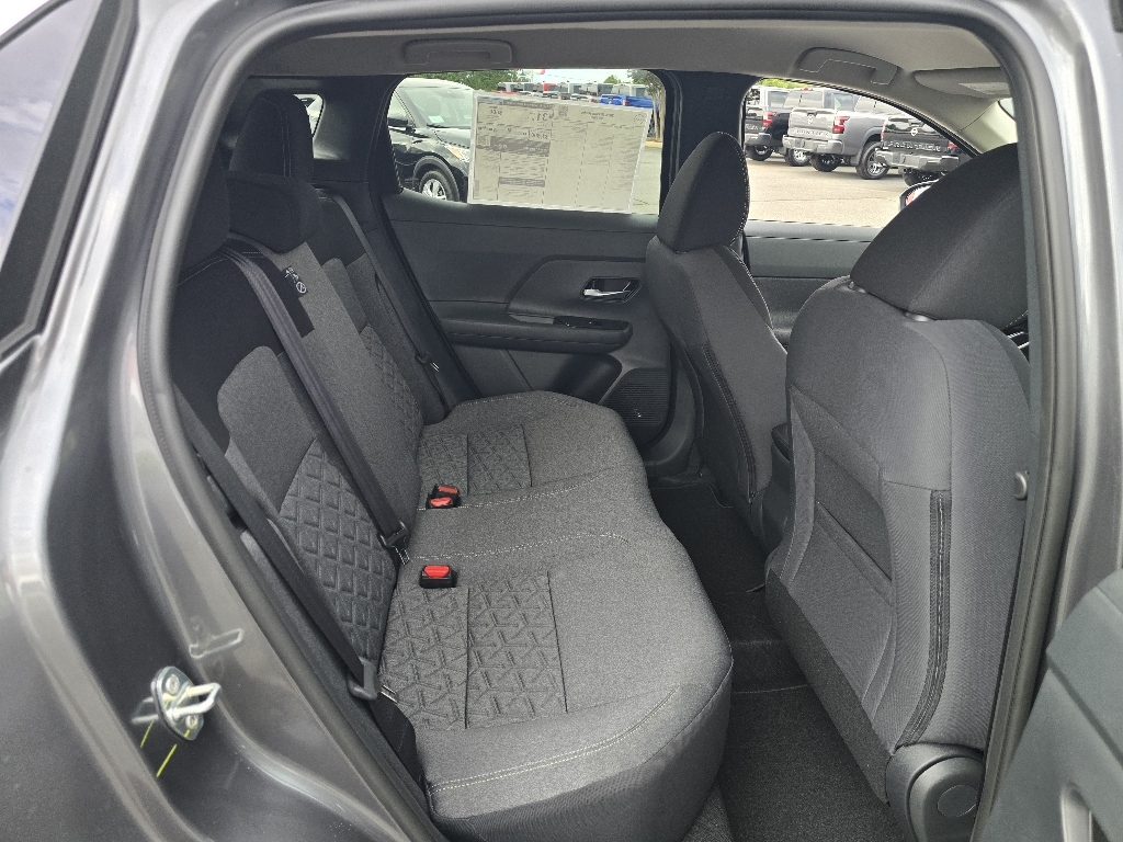 Gun Metallic 2026 Nissan Kicks SV FWD CVT with Xtronic 2.0L DOHC INFORMATION ABOUT THIS VEHICLE AND ITS FEATURES:, ABS brakes, Active Cruise Control, Electronic Stability Control, Emergency communication system, Illuminated entry, Low tire pressure warning, Remote keyless entry, Traction control. ABS brakes, Active Cruise Control, Electronic Stability Control, Emergency communication system, Illuminated entry, Low tire pressure warning, Remote keyless entry, Traction control, 4 Speakers, 4-Wheel Disc Brakes, Air Conditioning, AM/FM radio, Auto High-beam Headlights, Automatic temperature control, Blind Spot Warning, Brake assist, Bumpers: body-color, Cloth Seat Trim, Driver door bin, Driver vanity mirror, Dual front impact airbags, Dual front side impact airbags, Exterior Parking Camera Rear, Front anti-roll bar, Front Bucket Seats, Front Center Armrest, Front reading lights, Front wheel independent suspension, Fully automatic headlights, Knee airbag, NissanConnect featuring Apple CarPlay and Android Auto, Occupant sensing airbag, Outside temperature display, Overhead airbag, Panic alarm, Passenger door bin, Passenger vanity mirror, Power door mirrors, Power steering, Power windows, Radio data system, Radio: AM/FM/SiriusXM Audio System, Rear anti-roll bar, Rear reading lights, Rear side impact airbag, Rear window defroster, Rear window wiper, Security system, Speed control, Speed-sensing steering, Split folding rear seat, Spoiler, Sport steering wheel, Steering wheel mounted audio controls, Tachometer, Telescoping steering wheel, Tilt steering wheel, Trip computer, Variably intermittent wipers, and Wheels: 17Steel Flex w/Full Covers. 28/35 City/Highway MPG Price includes: $1000 - Nissan Customer Cash. Exp. 03/02/2026