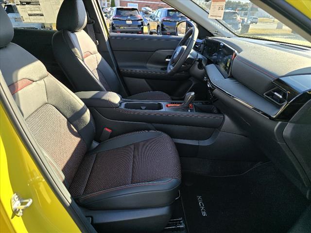 Yuzu Yellow Metallic/Super Black 2025 Nissan Kicks SR AWD CVT with Xtronic 2.0L DOHC INFORMATION ABOUT THIS VEHICLE AND ITS FEATURES:. Interior Electronics Package (Door Pocket Light and Interior Ambient Lighting), 17Alloy Wheels, 19Alloy Wheels, 2-Tone Premium Paint, 4-Wheel Disc Brakes, 6 Speakers, ABS brakes, Air Conditioning, Alloy wheels, Auto High-beam Headlights, Automatic temperature control, Brake assist, Bumpers: body-color, Carpeted Floor Mats, Delay-off headlights, Driver door bin, Driver vanity mirror, Dual front impact airbags, Dual front side impact airbags, Electronic Stability Control, Four wheel independent suspension, Front anti-roll bar, Front Bucket Seats, Front Center Armrest, Front reading lights, Fully automatic headlights, Heated door mirrors, Illuminated entry, Knee airbag, Leather Shift Knob, Leather steering wheel, Low tire pressure warning, Occupant sensing airbag, Outside temperature display, Overhead airbag, Overhead console, Panic alarm, Passenger door bin, Passenger vanity mirror, Power door mirrors, Power steering, Power windows, Radio data system, Radio: AM/FM Audio System, Rear anti-roll bar, Rear reading lights, Rear seat center armrest, Rear side impact airbag, Rear window defroster, Rear window wiper, Remote keyless entry, Security system, Speed control, Speed-sensing steering, Splash Guards, Split folding rear seat, Spoiler, Sport steering wheel, Steering wheel mounted audio controls, Tachometer, Telescoping steering wheel, Tilt steering wheel, Traction control, Trip computer, Turn signal indicator mirrors, Variably intermittent wipers, and Wireless Apple CarPlay/Wireless Android Auto. 27/34 City/Highway MPG Price includes: $1000 - Nissan MY25 New Kicks (SV and SR) Retail/Lease Bonus Cash. Exp. 01/05/2026