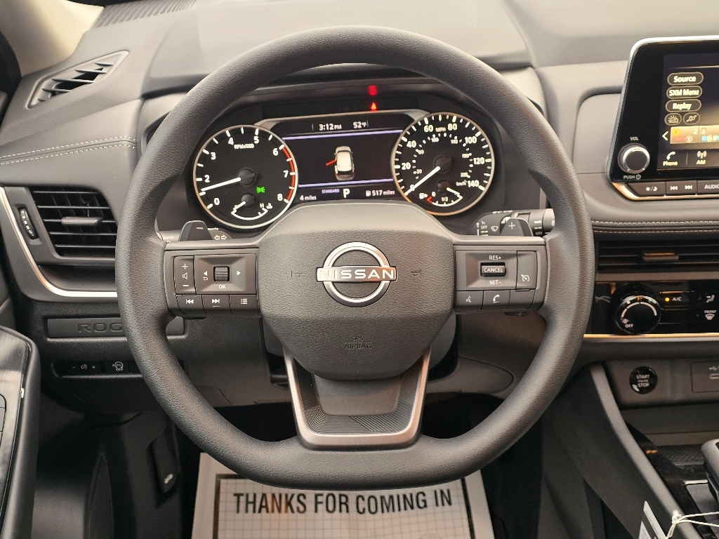 Gun Metallic 2026 Nissan Rogue S FWD CVT with Xtronic 1.5L DOHC INFORMATION ABOUT THIS VEHICLE AND ITS FEATURES:. 17Alloy Wheels, 4 Speakers, 4-Wheel Disc Brakes, ABS brakes, Air Conditioning, Alloy wheels, AM/FM radio: Sirius, Apple CarPlay/Android Auto, Auto High-beam Headlights, Blind Spot Warning, Brake assist, Bumpers: body-color, Cloth Seat Trim, Delay-off headlights, Driver door bin, Driver vanity mirror, Dual front impact airbags, Dual front side impact airbags, Electronic Stability Control, First Aid Kit, Floor Mats w/1-Piece Cargo Area Protector, Four wheel independent suspension, Front anti-roll bar, Front Bucket Seats, Front Center Armrest, Front reading lights, Fully automatic headlights, Illuminated entry, Knee airbag, Low tire pressure warning, Occupant sensing airbag, Outside temperature display, Overhead airbag, Overhead console, Panic alarm, Passenger door bin, Passenger vanity mirror, Power door mirrors, Power steering, Power windows, Radio data system, Radio: AM/FM NissanConnect, Rear anti-roll bar, Rear seat center armrest, Rear side impact airbag, Rear window defroster, Rear window wiper, Remote keyless entry, Retractable Cargo Cover, Speed control, Speed-sensing steering, Speed-Sensitive Wipers, Split folding rear seat, Spoiler, Steering wheel mounted audio controls, Tachometer, Telescoping steering wheel, Tilt steering wheel, Traction control, Trip computer, USB Charging Cable Set, and Variably intermittent wipers. 29/36 City/Highway MPG Price includes: $3500 - Nissan Customer Cash. Exp. 03/02/2026