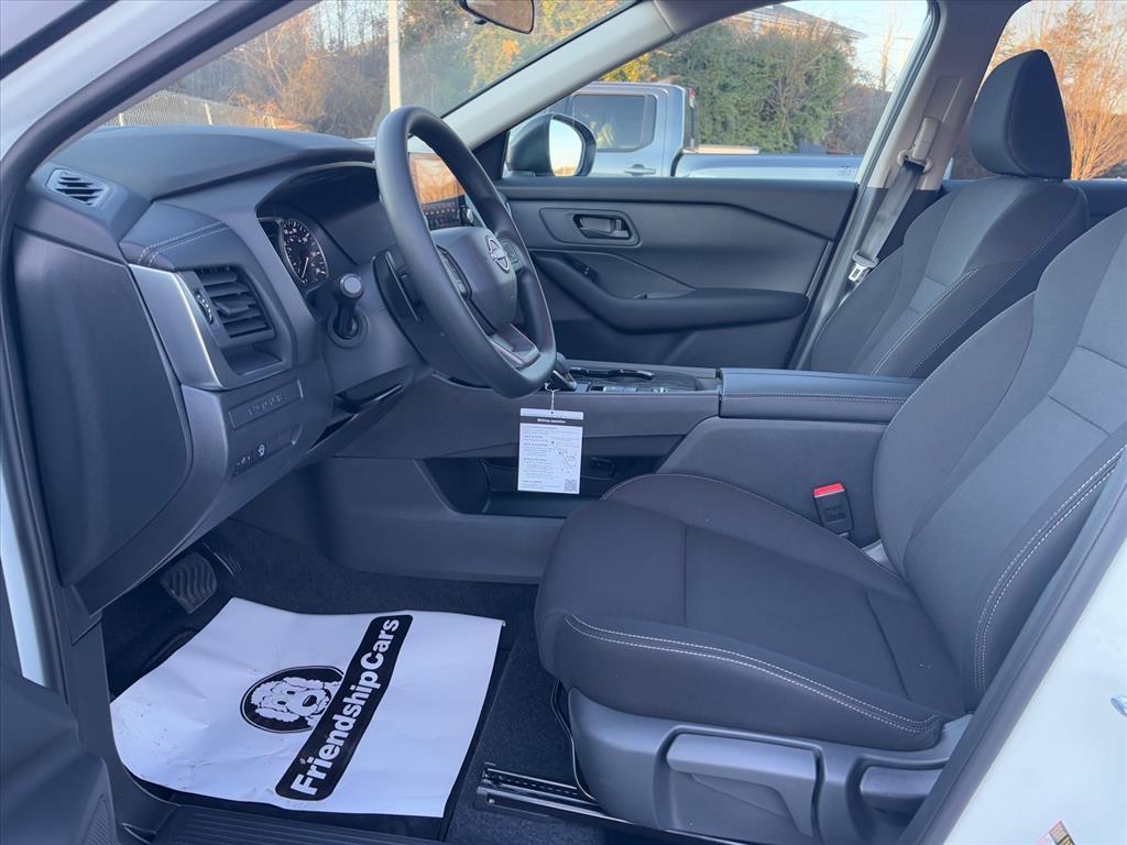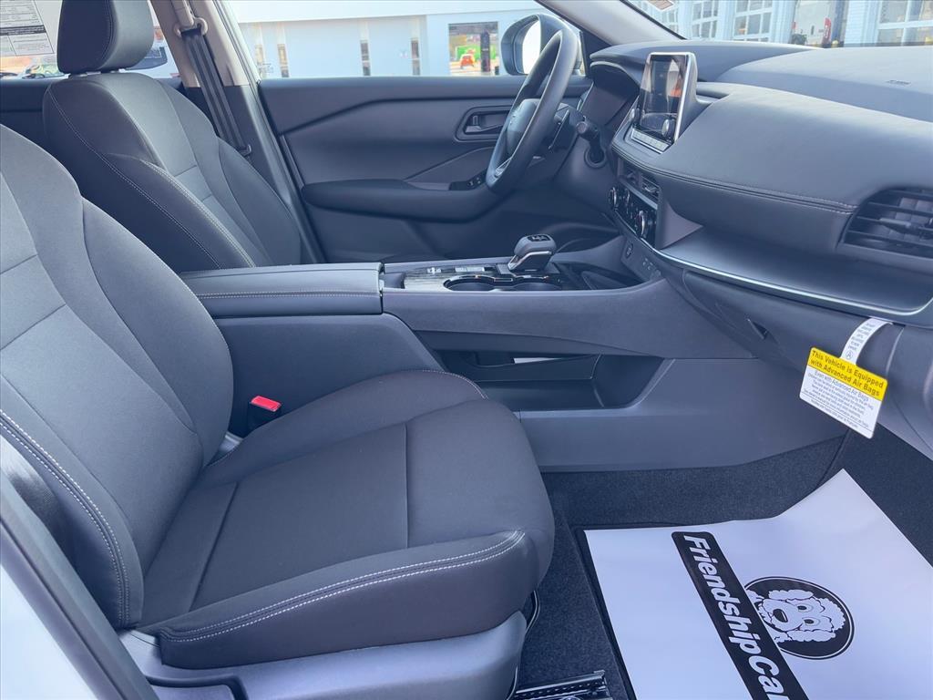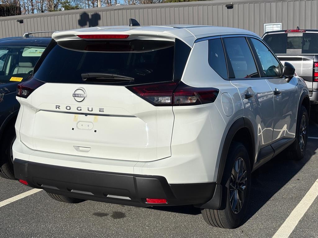 Glacier White 2026 Nissan Rogue S FWD CVT with Xtronic 1.5L DOHC INFORMATION ABOUT THIS VEHICLE AND ITS FEATURES:. 17Alloy Wheels, 4 Speakers, 4-Wheel Disc Brakes, ABS brakes, Air Conditioning, Alloy wheels, AM/FM radio, Apple CarPlay/Android Auto, Auto High-beam Headlights, Black Splash Guards (set of 4), Blind Spot Warning, Brake assist, Bumpers: body-color, Cloth Seat Trim, Delay-off headlights, Driver door bin, Driver vanity mirror, Dual front impact airbags, Dual front side impact airbags, Electronic Stability Control, Four wheel independent suspension, Front anti-roll bar, Front Bucket Seats, Front Center Armrest, Front reading lights, Fully automatic headlights, Illuminated entry, Knee airbag, Low tire pressure warning, Occupant sensing airbag, Outside temperature display, Overhead airbag, Overhead console, Panic alarm, Passenger door bin, Passenger vanity mirror, Power door mirrors, Power steering, Power windows, Radio data system, Radio: AM/FM NissanConnect, Rear anti-roll bar, Rear seat center armrest, Rear side impact airbag, Rear window defroster, Rear window wiper, Remote keyless entry, Speed control, Speed-sensing steering, Speed-Sensitive Wipers, Split folding rear seat, Spoiler, Steering wheel mounted audio controls, Tachometer, Telescoping steering wheel, Tilt steering wheel, Traction control, Trip computer, and Variably intermittent wipers. 29/36 City/Highway MPG Price includes: $3500 - Nissan Customer Cash. Exp. 03/02/2026