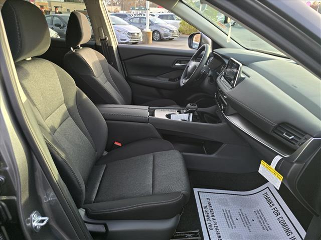 Gun Metallic 2026 Nissan Rogue SV FWD CVT with Xtronic 1.5L DOHC INFORMATION ABOUT THIS VEHICLE AND ITS FEATURES:. 4-Wheel Disc Brakes, 6 Speakers, ABS brakes, Air Conditioning, Alloy wheels, AM/FM radio: Sirius, Apple CarPlay/Android Auto, Auto High-beam Headlights, Automatic temperature control, Black Splash Guards (Set of 4) (B92), Brake assist, Bumpers: body-color, Chrome Rear Bumper Protector, Delay-off headlights, Driver door bin, Driver vanity mirror, Dual front impact airbags, Dual front side impact airbags, Electronic Stability Control, Emergency communication system: NissanConnect Services, First Aid Kit, Floor Mats w/1-Piece Cargo Area Protector, Four wheel independent suspension, Front anti-roll bar, Front Bucket Seats, Front Center Armrest, Front dual zone A/C, Front reading lights, Fully automatic headlights, Heated door mirrors, Illuminated entry, Knee airbag, Low tire pressure warning, Occupant sensing airbag, Outside temperature display, Overhead airbag, Overhead console, Panic alarm, Passenger door bin, Passenger vanity mirror, Power door mirrors, Power driver seat, Power Liftgate, Power steering, Power windows, Prima-Tex Leatherette Seat Trim, Radio data system, Radio: AM/FM NissanConnect, Rear anti-roll bar, Rear seat center armrest, Rear side impact airbag, Rear window defroster, Rear window wiper, Remote keyless entry, Speed control, Speed-sensing steering, Speed-Sensitive Wipers, Split folding rear seat, Spoiler, Steering wheel mounted audio controls, Tachometer, Telescoping steering wheel, Tilt steering wheel, Traction control, Trip computer, and Variably intermittent wipers. 29/36 City/Highway MPG Price includes: $3500 - Nissan Customer Cash. Exp. 03/02/2026
