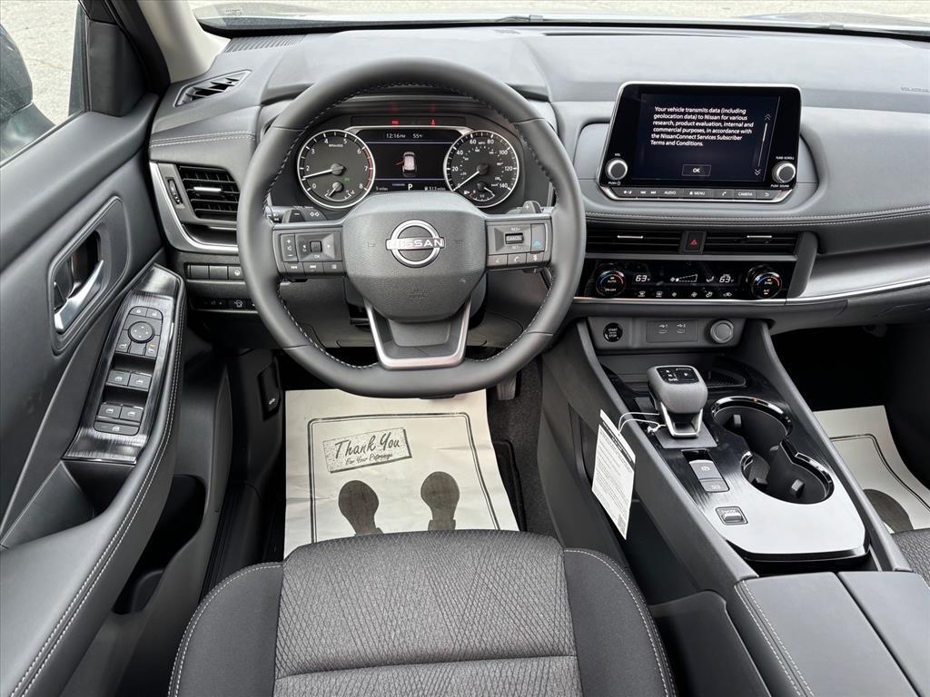 Gun Metallic 2026 Nissan Rogue SV FWD CVT with Xtronic 1.5L DOHC INFORMATION ABOUT THIS VEHICLE AND ITS FEATURES:. 4-Wheel Disc Brakes, 6 Speakers, ABS brakes, Air Conditioning, Alloy wheels, Apple CarPlay/Android Auto, Auto High-beam Headlights, Automatic temperature control, Black Splash Guards (Set of 4) (B92), Brake assist, Bumpers: body-color, Chrome Rear Bumper Protector, Delay-off headlights, Driver door bin, Driver vanity mirror, Dual front impact airbags, Dual front side impact airbags, Electronic Stability Control, Emergency communication system: NissanConnect Services, First Aid Kit, Floor Mats w/1-Piece Cargo Area Protector, Four wheel independent suspension, Front anti-roll bar, Front Bucket Seats, Front Center Armrest, Front dual zone A/C, Front reading lights, Fully automatic headlights, Heated door mirrors, Illuminated entry, Knee airbag, Low tire pressure warning, Occupant sensing airbag, Outside temperature display, Overhead airbag, Overhead console, Panic alarm, Passenger door bin, Passenger vanity mirror, Power door mirrors, Power driver seat, Power Liftgate, Power steering, Power windows, Radio data system, Radio: AM/FM NissanConnect, Rear anti-roll bar, Rear seat center armrest, Rear side impact airbag, Rear window defroster, Rear window wiper, Remote keyless entry, Speed control, Speed-sensing steering, Speed-Sensitive Wipers, Split folding rear seat, Spoiler, Steering wheel mounted audio controls, Tachometer, Telescoping steering wheel, Tilt steering wheel, Traction control, Trip computer, and Variably intermittent wipers. 29/36 City/Highway MPG Price includes: $3500 - Nissan Customer Cash. Exp. 03/02/2026