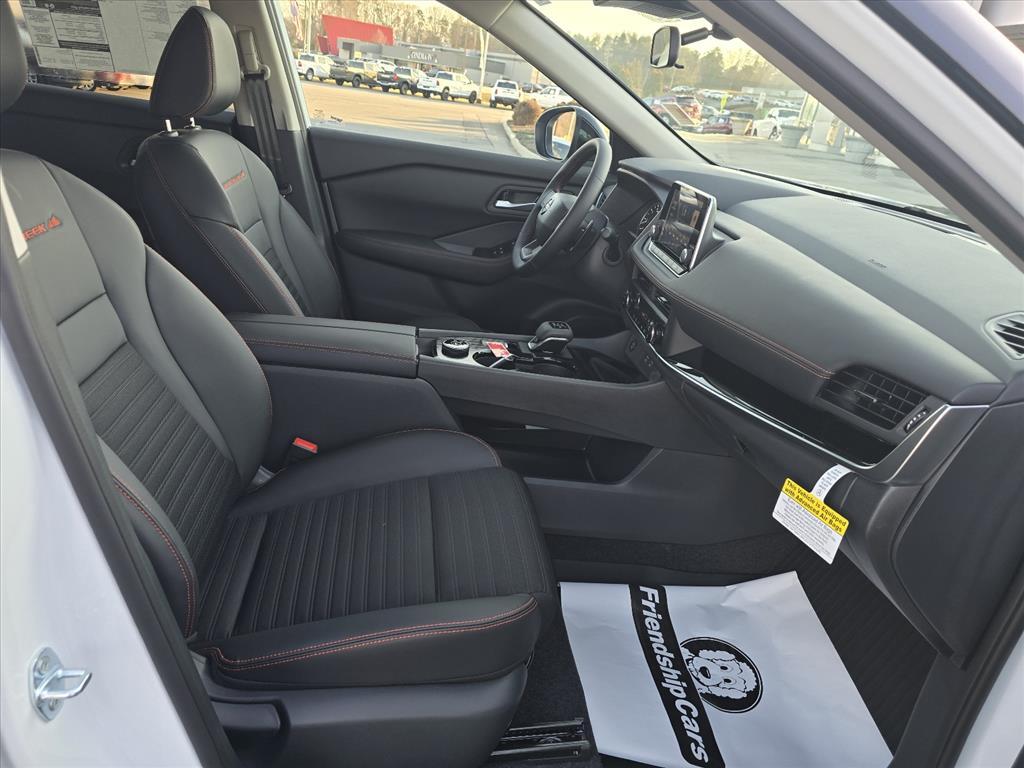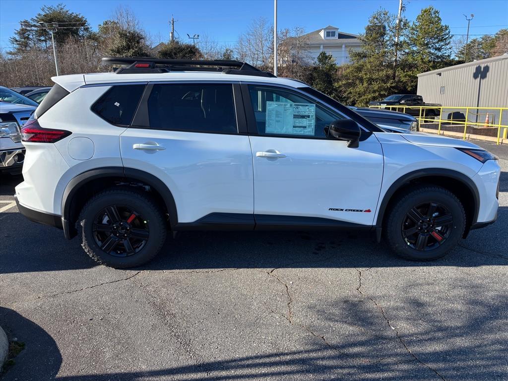 Everest White Pearl Tricoat 2026 Nissan Rogue Rock Creek AWD CVT with Xtronic 1.5L DOHC INFORMATION ABOUT THIS VEHICLE AND ITS FEATURES:, AWD. AWD, 4-Wheel Disc Brakes, 6 Speakers, ABS brakes, Air Conditioning, Alloy wheels, AM/FM radio, Apple CarPlay/Android Auto, Auto High-beam Headlights, Automatic temperature control, Black Splash Guards (set of 4), Brake assist, Delay-off headlights, Driver door bin, Driver vanity mirror, Dual front impact airbags, Dual front side impact airbags, Electronic Stability Control, Emergency communication system: NissanConnect Services, First Aid Kit, Four wheel independent suspension, Front anti-roll bar, Front Bucket Seats, Front Center Armrest, Front dual zone A/C, Front reading lights, Fully automatic headlights, Heated door mirrors, Heated Front Bucket Seats, Heated front seats, Illuminated entry, Knee airbag, Leatherette and Ballistic Nylon Seating, Low tire pressure warning, Occupant sensing airbag, Outside temperature display, Overhead airbag, Overhead console, Panic alarm, Passenger door bin, Passenger vanity mirror, Power door mirrors, Power driver seat, Power Liftgate, Power steering, Power windows, Premium Paint, Radio data system, Radio: AM/FM NissanConnect, Rear anti-roll bar, Rear Parking Sensors, Rear seat center armrest, Rear side impact airbag, Rear window defroster, Rear window wiper, Remote keyless entry, Roof rack, Speed control, Speed-sensing steering, Speed-Sensitive Wipers, Split folding rear seat, Spoiler, Steering wheel mounted audio controls, Tachometer, Telescoping steering wheel, Tilt steering wheel, Traction control, Trip computer, Variably intermittent wipers, and Wheels: 17Dark Painted Alloy. 27/32 City/Highway MPG Price includes: $3500 - Nissan Customer Cash. Exp. 03/02/2026