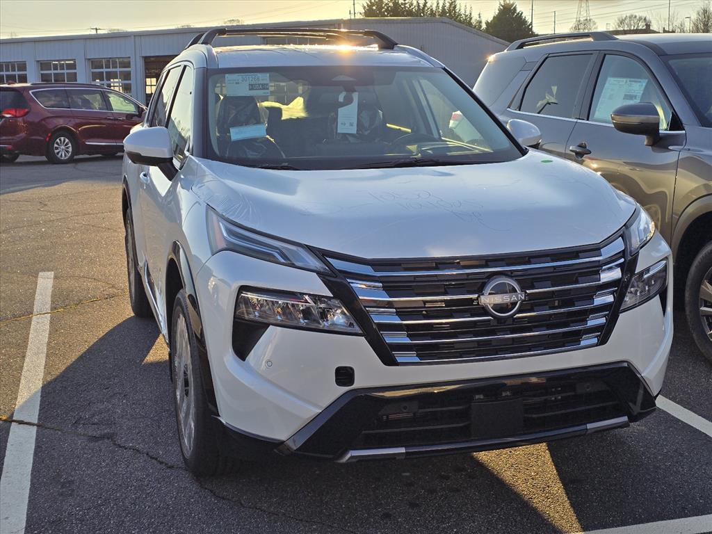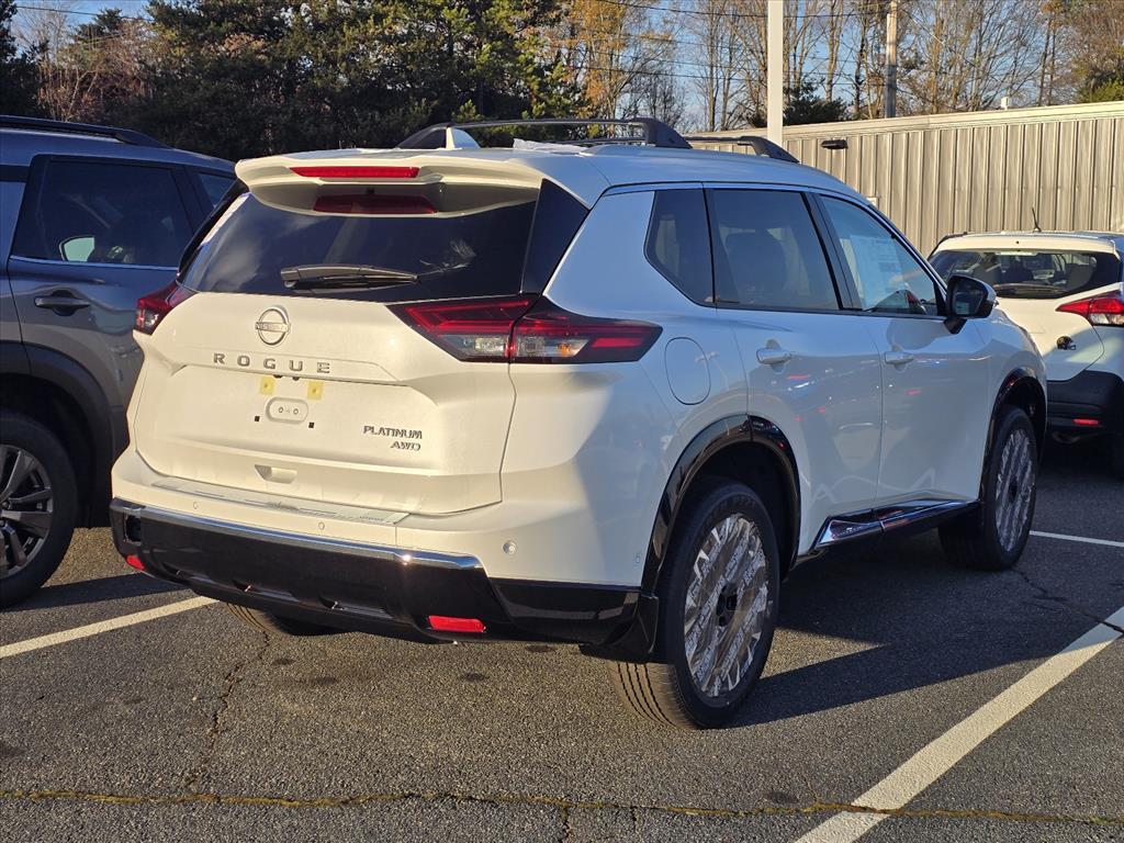 Everest White Pearl Tricoat 2026 Nissan Rogue Platinum AWD CVT with Xtronic 1.5L DOHC INFORMATION ABOUT THIS VEHICLE AND ITS FEATURES:, AWD. Platinum Premium Package (Head-Up Display, Heated Rear Seats, Motion-Activated Power Liftgate, and Tri-Zone Automatic Temperature Control), AWD, 10 Speakers, 4-Wheel Disc Brakes, ABS brakes, Air Conditioning, Alloy wheels, AM/FM radio: SiriusXM w/360L, Auto High-beam Headlights, Auto-dimming Rear-View mirror, Automatic temperature control, Black Splash Guards (set of 4), Bose Premium Audio System, Brake assist, Bumpers: body-color, Chrome Rear Bumper Protector, Delay-off headlights, Driver door bin, Driver vanity mirror, Dual front impact airbags, Dual front side impact airbags, Electronic Stability Control, Emergency communication system: NissanConnect Services, Floor Mats with 2-Piece Cargo Area Protector, Four wheel independent suspension, Front anti-roll bar, Front Bucket Seats, Front Center Armrest, Front dual zone A/C, Front reading lights, Fully automatic headlights, Garage door transmitter: myQ Connected Garage, Heads-Up Display, Heated door mirrors, Heated Front Bucket Seats, Heated front seats, Heated steering wheel, Illuminated entry, Knee airbag, Low tire pressure warning, Memory seat, Navigation system: Google Maps, Occupant sensing airbag, Outside temperature display, Overhead airbag, Overhead console, Panic alarm, Passenger door bin, Passenger vanity mirror, Power door mirrors, Power driver seat, Power Liftgate, Power moonroof, Power passenger seat, Power steering, Power windows, Premium Paint, Quilted Semi-Aniline Leather-Appointed Seat Trim, Radio data system, Radio: AM/FM NissanConnect with Navigation, Rear anti-roll bar, Rear reading lights, Rear seat center armrest, Rear side impact airbag, Rear window defroster, Rear window wiper, Remote keyless entry, Roof Rail Cross Bars, Security system, Speed control, Speed-sensing steering, Speed-Sensitive Wipers, Split folding rear seat, Spoiler, Steering wheel mounted audio controls, Tachometer, Telescoping steering wheel, Tilt steering wheel, Traction control, Trip computer, Turn signal indicator mirrors, Variably intermittent wipers, Wheels: 19Unique Dark Painted Aluminum Alloy, and Wireless Apple CarPlay/Wireless Android Auto. 28/35 City/Highway MPG Price includes: $3500 - Nissan Customer Cash. Exp. 03/02/2026