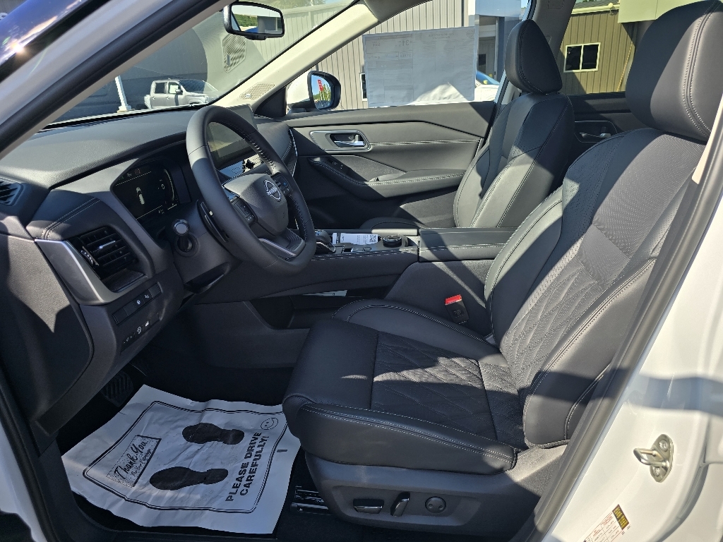 Everest White Pearl Tricoat 2026 Nissan Rogue Platinum AWD CVT with Xtronic 1.5L DOHC INFORMATION ABOUT THIS VEHICLE AND ITS FEATURES:, AWD. Platinum Premium Package (Head-Up Display, Heated Rear Seats, Motion-Activated Power Liftgate, and Tri-Zone Automatic Temperature Control), AWD, 10 Speakers, 4-Wheel Disc Brakes, ABS brakes, Air Conditioning, Alloy wheels, AM/FM radio: SiriusXM w/360L, Auto High-beam Headlights, Auto-dimming Rear-View mirror, Automatic temperature control, Bose Premium Audio System, Brake assist, Bumpers: body-color, Chrome Rear Bumper Protector, Delay-off headlights, Driver door bin, Driver vanity mirror, Dual front impact airbags, Dual front side impact airbags, Electronic Stability Control, Emergency communication system: NissanConnect Services, First Aid Kit, Four wheel independent suspension, Front anti-roll bar, Front Bucket Seats, Front Center Armrest, Front dual zone A/C, Front reading lights, Fully automatic headlights, Garage door transmitter: myQ Connected Garage, Heads-Up Display, Heated door mirrors, Heated Front Bucket Seats, Heated front seats, Heated steering wheel, Illuminated entry, Knee airbag, Low tire pressure warning, Memory seat, Navigation system: Google Maps, Occupant sensing airbag, Outside temperature display, Overhead airbag, Overhead console, Panic alarm, Passenger door bin, Passenger vanity mirror, Power door mirrors, Power driver seat, Power Liftgate, Power moonroof, Power passenger seat, Power steering, Power windows, Premium Paint, Quilted Semi-Aniline Leather-Appointed Seat Trim, Radio data system, Rear anti-roll bar, Rear reading lights, Rear seat center armrest, Rear side impact airbag, Rear window defroster, Rear window wiper, Remote keyless entry, Roof Rail Cross Bars, Security system, Speed control, Speed-sensing steering, Speed-Sensitive Wipers, Split folding rear seat, Spoiler, Steering wheel mounted audio controls, Tachometer, Telescoping steering wheel, Tilt steering wheel, Traction control, Trip computer, Turn signal indicator mirrors, Variably intermittent wipers, Wheels: 19Unique Dark Painted Aluminum Alloy, and Wireless Apple CarPlay/Wireless Android Auto. 28/35 City/Highway MPG Price includes: $2500 - Nissan Customer Cash. Exp. 01/05/2026 $500 - Nissan MY26 Rogue and Murano Customer Cash. Exp. 01/05/2026
