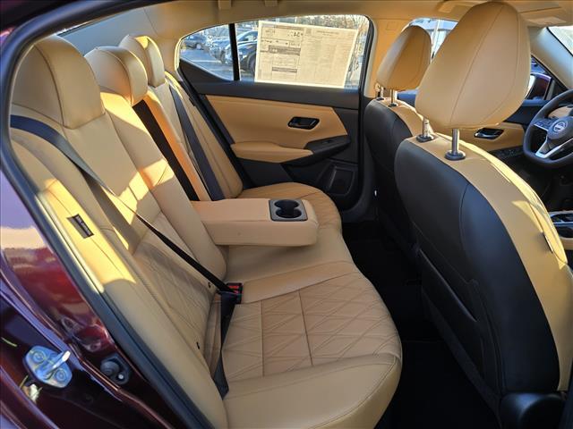 Rosewood Metallic 2025 Nissan Sentra SV FWD CVT with Xtronic 2.0L I4 DOHC INFORMATION ABOUT THIS VEHICLE AND ITS FEATURES:, CVT with Xtronic, Sv Premium Leather. All-Weather Package (Dual Zone Auto Climate Control, Heated Exterior Mirrors, Heated Front Seats, Leather-Wrapped Heated Steering Wheel, and Remote Engine Start), SV Premium Package (17Alloy Wheels, 6-Way Power Drivers Seat, Bose Premium Audio System with 8 Speakers, Intelligent Around View Monitor (I-AVM), Leather Shift Knob, Power Sliding Glass Moonroof with Tilt Feature, Quilted Leather Seat Trim, Rear Armrest with 2 Cupholders, and Turn Signal Indicators on Exterior Mirrors), CVT with Xtronic, Sv Premium Leather, 16Alloy Wheels, 4-Wheel Disc Brakes, 8 Speakers, ABS brakes, Air Conditioning, Alloy wheels, AM/FM radio: SiriusXM, Auto High-beam Headlights, Blind Spot Warning, Body Colored Splash Guards (4-Piece), Brake assist, Bumpers: body-color, Carpeted Floor Mats with Trunk Mat, Clear Rear Bumper Protector, Delay-off headlights, Door Sill Plates, Driver door bin, Driver vanity mirror, Dual front impact airbags, Dual front side impact airbags, Electronic Stability Control, Four wheel independent suspension, Front anti-roll bar, Front Bucket Seats, Front Center Armrest, Front reading lights, Fully automatic headlights, Illuminated entry, Knee airbag, Low tire pressure warning, Nissan Connect Services, NissanConnect featuring Apple CarPlay and Android Auto, NissanConnect Services, Occupant sensing airbag, Outside temperature display, Overhead airbag, Overhead console, Panic alarm, Passenger door bin, Passenger vanity mirror, Power door mirrors, Power steering, Power windows, Radio data system, Radio: AM/FM with RDS/MP3/Aux-in, Rear anti-roll bar, Rear Parking Sensors, Rear side impact airbag, Rear window defroster, Remote keyless entry, Security system, Speed control, Speed-sensing steering, Split folding rear seat, Steering wheel mounted audio controls, Tachometer, Telescoping steering wheel, Tilt steering wheel, Traction control, Trip computer, Upgraded Cloth Seat Trim, Variably intermittent wipers, and Wi-Fi Hotspot. 30/40 City/Highway MPG Price includes: $500 - Nissan MY25 Sentra Bonus Cash. Exp. 01/05/2026 $500 - Nissan SER MY25 Sentra (SV - SR) Bonus Cash - December. Exp. 01/05/2026
