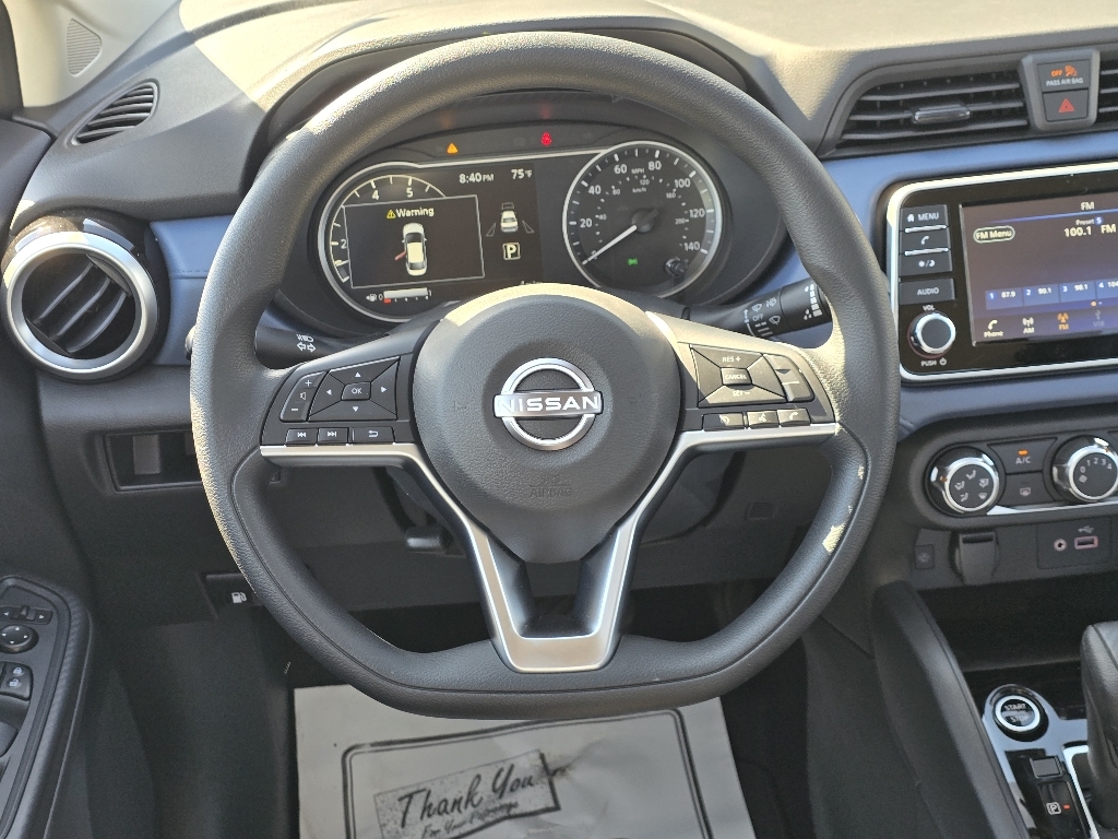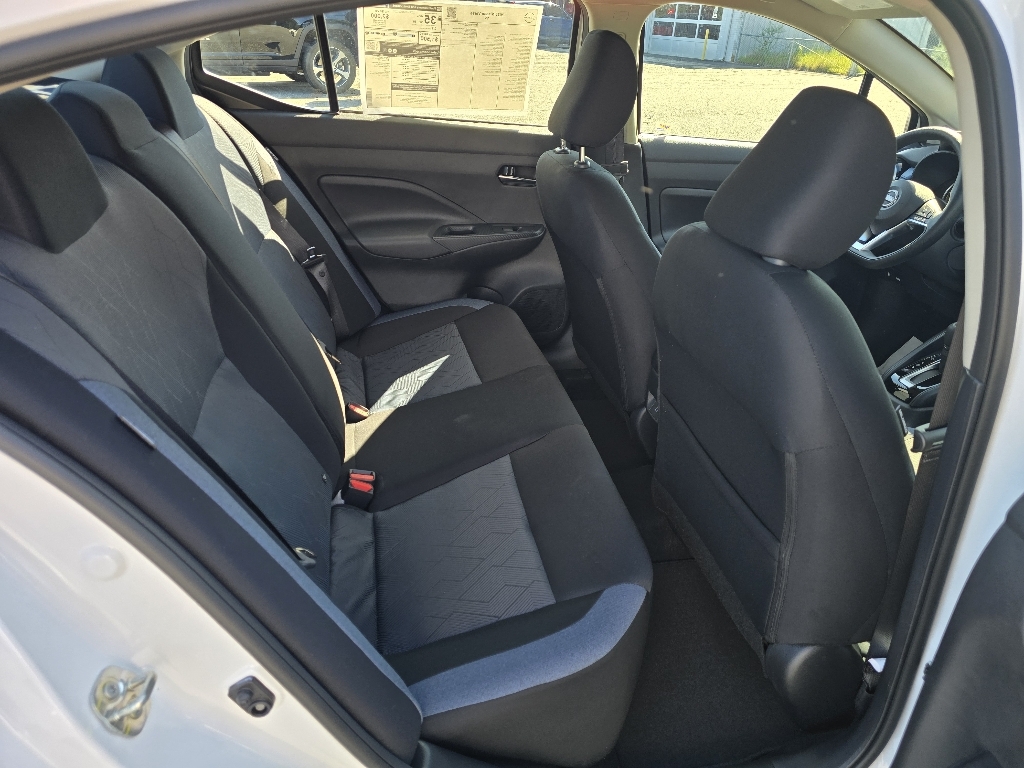 Aspen White Tricoat 2025 Nissan Versa 1.6 SV FWD CVT 1.6L I4 DOHC 16V INFORMATION ABOUT THIS VEHICLE AND ITS FEATURES:. Trunk Package (Shopping Bag Hooks and Trunk Net), 16Aluminum Alloy Wheels, 4 Speakers, ABS brakes, Air Conditioning, Alloy wheels, Apple CarPlay/Android Auto, Auto High-beam Headlights, Blind Spot Warning, Brake assist, Bumpers: body-color, Carpeted Floor Mats & Trunk Mat (5-Piece Set), Delay-off headlights, Driver door bin, Driver vanity mirror, Dual front impact airbags, Dual front side impact airbags, Electronic Stability Control, Front anti-roll bar, Front Bucket Seats, Front Center Armrest, Front reading lights, Front wheel independent suspension, Fully automatic headlights, Heated door mirrors, Illuminated entry, Knee airbag, Low tire pressure warning, Occupant sensing airbag, Outside temperature display, Overhead airbag, Panic alarm, Passenger door bin, Passenger vanity mirror, Power door mirrors, Power steering, Power windows, Premium Paint, Radio data system, Radio: AM/FM Audio System, Rear Parking Sensors, Rear side impact airbag, Rear window defroster, Remote keyless entry, Speed control, Splash Guards, Split folding rear seat, Steering wheel mounted audio controls, Tachometer, Telescoping steering wheel, Tilt steering wheel, Traction control, Trip computer, Upgraded Cloth Seat Trim, and Variably intermittent wipers. 32/40 City/Highway MPG Price includes: $750 - Nissan MY25 Versa Bonus Cash (All Markets) - December. Exp. 01/05/2026