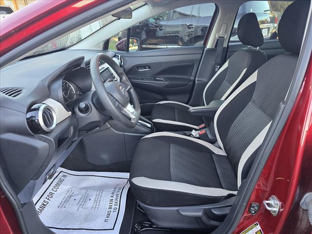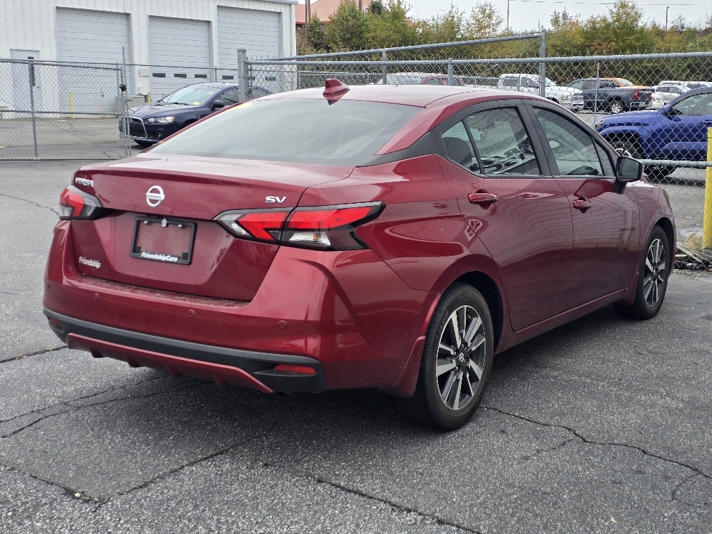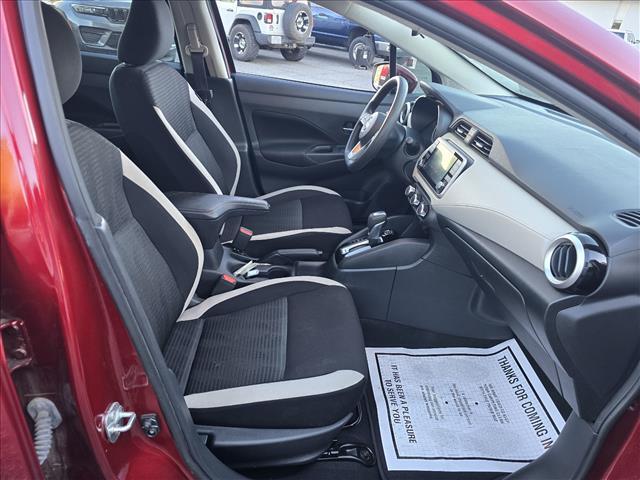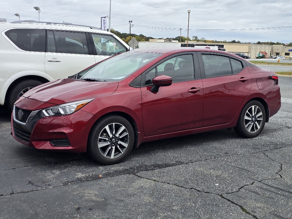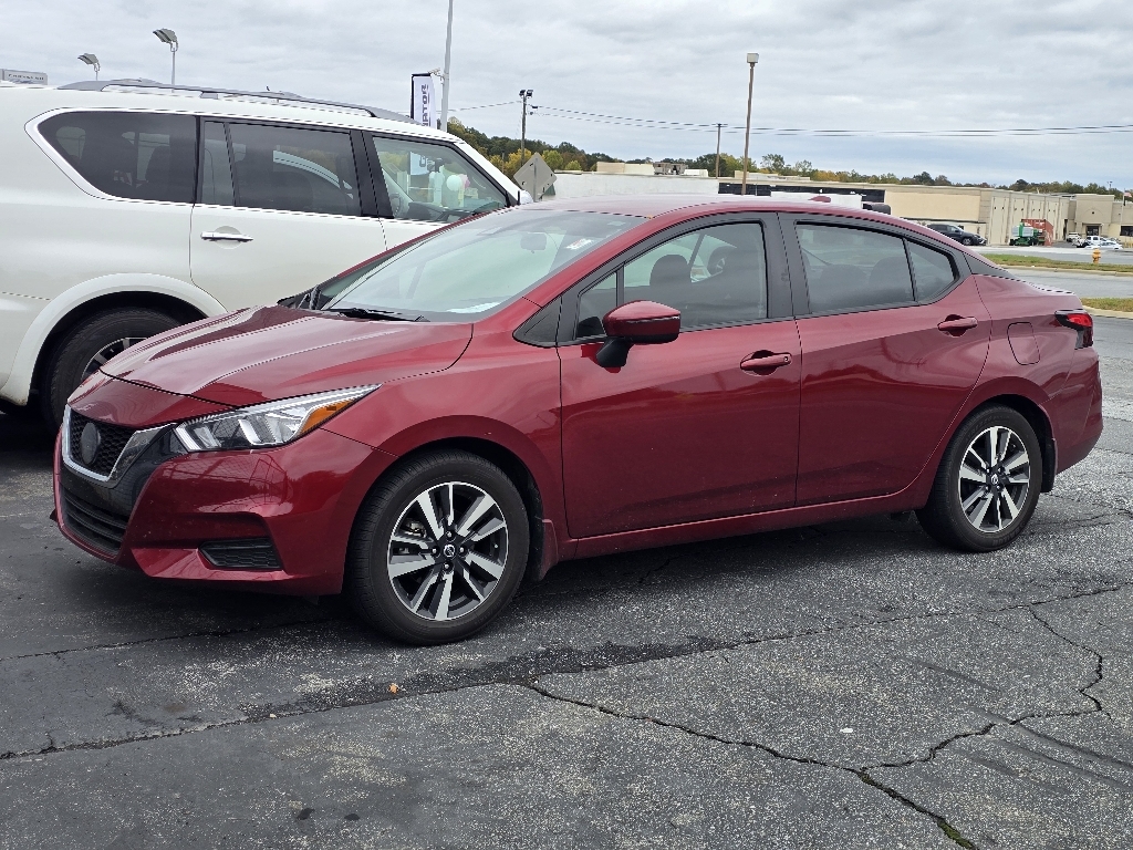 CVT CARFAX One-Owner. INFORMATION ABOUT THIS VEHICLE AND ITS FEATURES:, USB Port, Backup Camera/ Rearview Camera, Voice Recognition, Smartphone Integration, Apple Car Play / Android Auto, Push Button Start, Automatic Headlights, Steering Wheel Controls, Backup Camera, 16Alloy Wheels, Apple CarPlay/Android Auto, Auto High-beam Headlights, Fully automatic headlights, Panic alarm, Power windows, Remote keyless entry, Turn signal indicator mirrors. 2021 Nissan Versa 1.6 SV Scarlet Ember Pearl Metallic FWD 1.6L 4-Cylinder DOHC 16V Odometer is 53058 miles below market average! 32/40 City/Highway MPG 16Alloy Wheels, Apple CarPlay/Android Auto, Auto High-beam Headlights, Fully automatic headlights, Panic alarm, Power windows, Remote keyless entry, Turn signal indicator mirrors, 4 Speakers, ABS brakes, Air Conditioning, Alloy wheels, AM/FM radio: SiriusXM, Armrest, Blind Spot Warning, Brake assist, Bumpers: body-color, Carpeted Floor Mats & Trunk Mat (5-Piece Set), Driver door bin, Driver vanity mirror, Dual front impact airbags, Dual front side impact airbags, Electronic Stability Control, Front anti-roll bar, Front Bucket Seats, Front reading lights, Front wheel independent suspension, Heated door mirrors, Illuminated entry, Knee airbag, Low tire pressure warning, Occupant sensing airbag, Outside temperature display, Overhead airbag, Passenger door bin, Passenger vanity mirror, Power door mirrors, Power steering, Radio data system, Radio: AM/FM Audio System, Rear side impact airbag, Rear window defroster, Speed control, Splash Guards, Split folding rear seat, Steering wheel mounted audio controls, Tachometer, Telescoping steering wheel, Tilt steering wheel, Traction control, Trip computer, Upgraded Cloth Seat Trim, and Variably intermittent wipers.