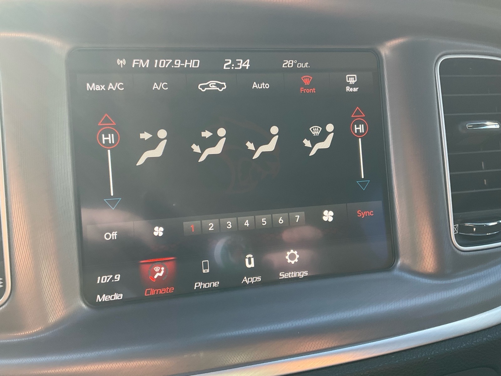 Dual front airbags, front seat mounted side-impact airbags, dual head curtain side-impact airbags, driver inflatable knee airbag, four-wheel Brembo six-piston ultra-high performance brakes with anti-lock, brake assist, brake override, rain brake support, ready alert braking, electronic stability control, all-speed traction control, hill-start assist, automatic bi-function high intensity discharge projector lamps, LED daytime running lamps, Bluetooth hands-free phone system, tip-start push button, blind-spot monitoring system, speed-sensitive power door locks, Keyless Enter ‘n Go, intelligent battery sensor, ParkSense rear park assist, ParkView rear backup camera, rear cross path detection, remote keyless entry, remote engine start, engine immobilizer, alarm system, universal garage door opener, tire sealant and electric compressor, and tire pressure monitoring system.