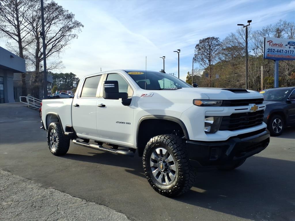 2024 Chevrolet Silverado 2500HD Custom Priced below KBB Fair Purchase Price! ALL ROUTINE MAINTENANCE UP TO DATE, ONE OWNER, NON-SMOKER, LOCAL TRADE, BLUETOOTH, BACKUP CAMERA, NAVIGATION, PUSH BUTTON START, HANDS FREE CALLING, KEYLESS ENTRY, POWER WINDOWS, POWER LOCKS, 4 WHEEL DRIVE, CARFAX ACCIDENT-FREE, RIVERSIDE ADVANTAGE --- Home of the FREE limited lifetime warranty! See Dealer for details..., CARFAX ONE-OWNER, OFF-ROAD TIRES, 10-Speed Automatic, 4WD, Black Cloth, 10-Way Power Driver Seat Adjuster w/Lumbar, 120-Volt Interior Power Outlet, 170 Amp Alternator, 2-Speed Electronic Shift Transfer Case, 3.5Diagonal Monochromatic Display DIC, Black Mirror Caps, Bluetooth� For Phone, Chevrolet Connected Access Capable, Color-Keyed Carpeting Floor Covering, Compass, Custom Convenience Package, Custom Value Package, Deep-Tinted Glass, Electric Rear-Window Defogger, Electronic Cruise Control w/Set & Resume Speed, EZ Lift Power Lock & Release Tailgate, Front Rubberized Vinyl Floor Mats, HD Rear Vision Camera, Heated & Auto-Dimming Vertical Trailering Mirrors, Heated Vertical Trailering Mirrors, Hill Descent Control, Integrated Trailer Brake Controller, LED Cargo Area Lighting, Locking Tailgate, Manual Tailgate Function w/No EZ Lift, Manual Tilt-Wheel Steering Column, Off-Road Suspension, OnStar & Chevrolet Connected Services Capable, Power Door Locks, Power Front Windows w/Driver Express Up/Down, Power Front Windows w/Passenger Express Down, Power Rear Windows w/Express Down, Preferred Equipment Group 1CX, Push Button Start, Rear 60/40 Folding Bench Seat (Folds Up), Rear Rubberized Vinyl Floor Mats, Remote Keyless Entry, Remote Vehicle Starter System, SiriusXM w/360L, Standard Tailgate, Suspension Package, Unauthorized Entry Theft-Deterrent System, Wi-Fi Hotspot Capable, Wireless Phone Projection, Z71 Off-Road Package. Home of the Lifetime Warrantyon most of our pre-owned vehicles! As part of the Riverside Automotive Group, Riverside Ford will not be undersold on any similar pre-owned vehicle. We have vehicles with the lowest prices, lowest miles and best selection which is why customers from Jacksonville, Morehead City, Wilmington, Greenville and Raleigh buy from us. But our unmatched service before, during and after the sale is what makes us the best place to purchase your next pre-owned vehicle. Come, see for yourself today!
