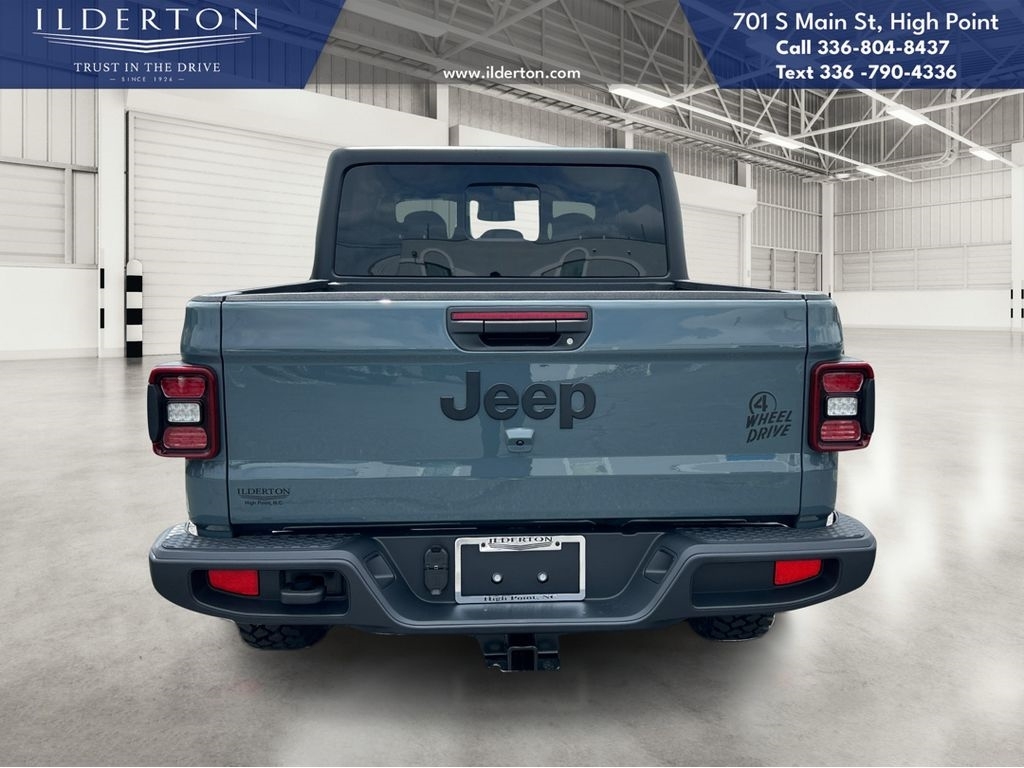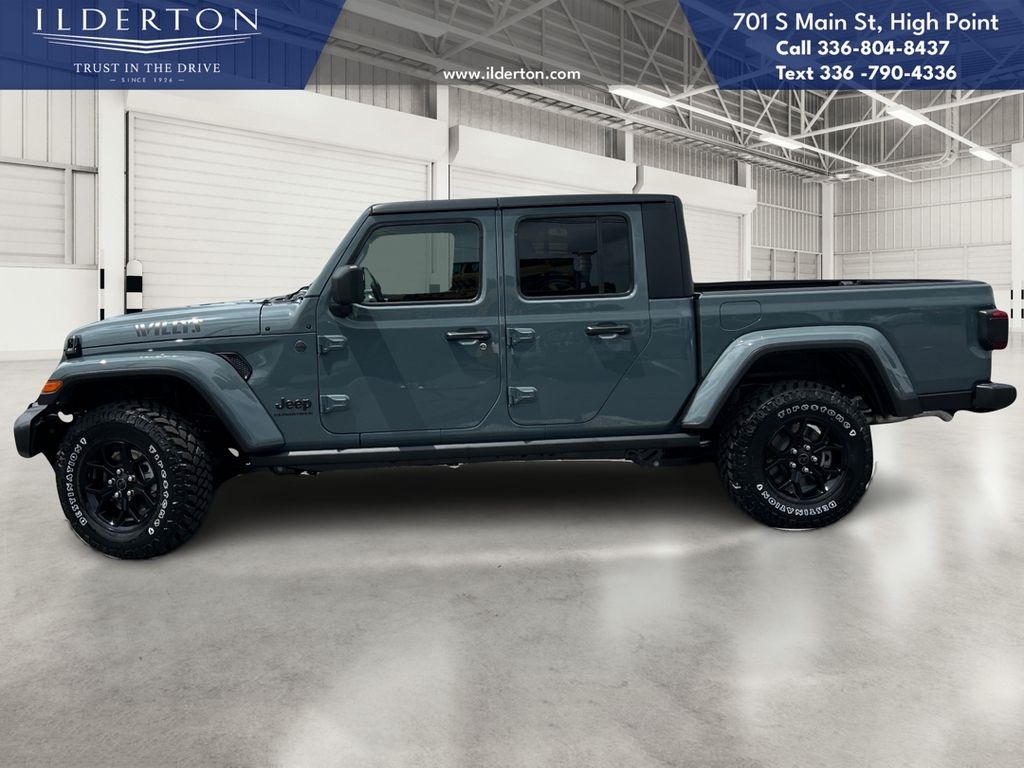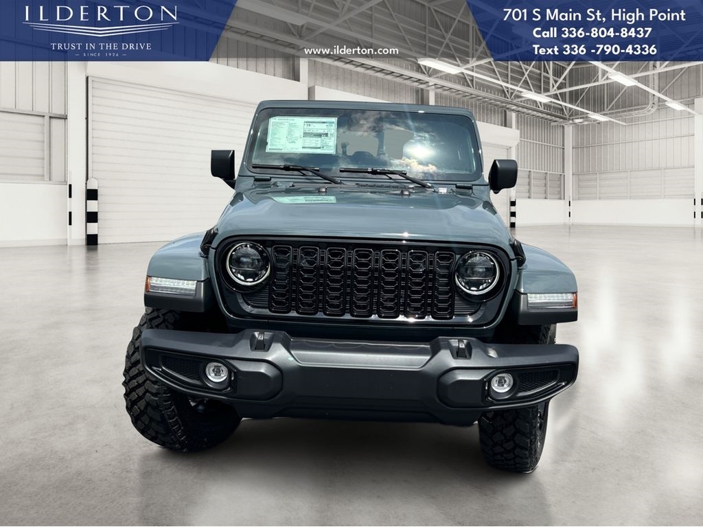 Summary*All New ILDERTON CDJR Advertised Prices Includes all manufacturer incentives that customers may or may not qualify for **All New ILDERTON CDJR Advertised Prices exclude all taxes, tag, doc fee $999, title, registration fees, government fees and dealer installed add-ons. ***All ILDERTON CDJR Advertised Prices Include $1,000 FINANCE CASH ****ILDERTON CDJR Finance Cash is only available on preowned vehicles for prime lender conventional financing arranged by ILDERTON CDJR with a 620 score pulled by dealer, some lender and term restrictions may apply. Offer valid only on preowned vehicles in stock at the time of purchase.EquipmentThe Jeep Gladiator offers Apple CarPlay for seamless connectivity. The vehicle offers Automatic Climate Control for personalized comfort. The Jeep Gladiators Forward Collision Warning system alerts the driver to potential front-end collisions, enhancing safety. This unit has automated speed control that adjusts to maintain a safe following distance, enhancing highway driving convenience. Start this 1/2 ton pickup from inside with remote start. Protect this Jeep Gladiator from unwanted accidents with a cutting edge backup camera system. An off-road package is installed on it so you are ready for your four-wheeling best. Keep your hands warm all winter with a heated steering wheel in the Jeep Gladiator . This 1/2 ton pickup features a hands-free Bluetooth phone system. This unit offers Android Auto for seamless smartphone integration. This Jeep Gladiator has a V6, 3.6L high output engine. Set the temperature exactly where you are most comfortable in this 2025 Jeep Gladiator . The fan speed and temperature will automatically adjust to maintain your preferred zone climate.PackagesConvenience Group: Emergency/assistance Call; Front Door Locks 2-Door Passive Entry; Remote Start System; Universal Garage Door Opener; Daytime Running Lamp System; Heated Front Seats; Heated Steering Wheel; Corning Gorilla Glass. Quick Order Package 24W Willys: LED Taillamps; Protection Sill Rails; 4-Wheel Drive Decal; Black Grille; MOPAR All-Weather Slush Mats; LT255/75R17C OWL On/off Road Tires; 2-Piece Body Color Fender Flares; Front Heavy Duty Red Accent Shock Absorbers; Daytime Running Lamps LED Accents; Front LED Fog Lamps; LED Premium Reflector Headlamps; E-Locker Rear Axle; Trailer Hitch Zoom; Class IV Receiver Hitch; Security Alarm; Mold in Color Bumper with Gloss Black; Advanced Brake Assis