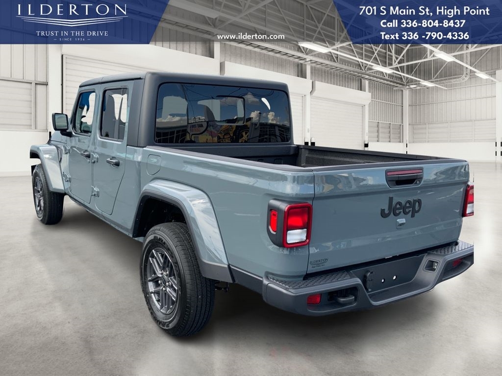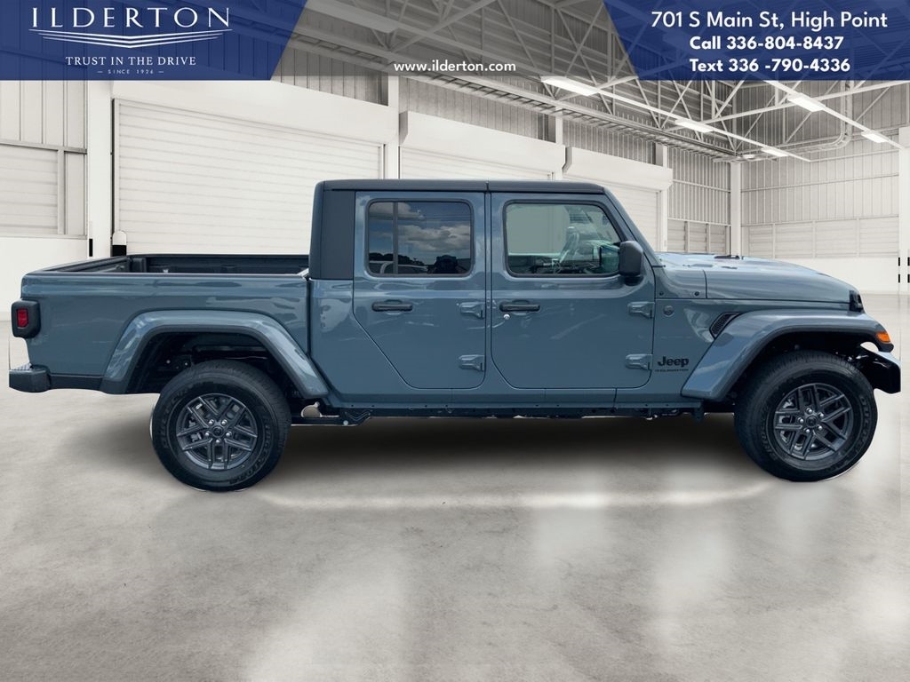 Summary*All New ILDERTON CDJR Advertised Prices Includes all manufacturer incentives that customers may or may not qualify for **All New ILDERTON CDJR Advertised Prices exclude all taxes, tag, doc fee $999, title, registration fees, government fees and dealer installed add-ons. ***All ILDERTON CDJR Advertised Prices Include $1,000 FINANCE CASH ****ILDERTON CDJR Finance Cash is only available on preowned vehicles for prime lender conventional financing arranged by ILDERTON CDJR with a 620 score pulled by dealer, some lender and term restrictions may apply. Offer valid only on preowned vehicles in stock at the time of purchase.EquipmentApple CarPlay: Seamless smartphone integration for the vehicle - stay connected and entertained on the go! This model offers Android Auto for seamless smartphone integration. Its Forward Collision Warning feature alerts drivers to potential front-end collisions. This 1/2 ton pickup features a hands-free Bluetooth phone system. An off-road package is equipped on this 2025 Jeep Gladiator . Protect this model from unwanted accidents with a cutting edge backup camera system. It is pure luxury with a heated steering wheel. Never get into a cold vehicle again with the remote start feature on the vehicle. The vehicle has automated speed control that adjusts to maintain a safe following distance, enhancing highway driving convenience. The Jeep Gladiator keeps you comfortable with Auto Climate. Maintaining a stable interior temperature in the vehicle is easy with the climate control system. When you encounter slick or muddy roads, you can engage the four wheel drive on the vehicle and drive with confidence.PackagesDark Sky Appearance Package: Mold in Color Bumper with Gloss Black; 2-Piece Body Color Fender Flares; Daytime Running Lamp System; Performance Hood. Convenience Group: Emergency/assistance Call; Front Door Locks 2-Door Passive Entry; 2-Piece Body Color Fender Flares; Remote Start System; Cluster 7.0TFT Color Display; Universal Garage Door Opener; Daytime Running Lamp System; Heated Front Seats; Air Conditioning with Auto Temp Control; Heated Steering Wheel; Corning Gorilla Glass. Quick Order Package 24S Sport S: Advanced Brake Assist; 17X 7.5Gray Wheels; Power Heated Mirrors; Enhanced Adaptive Cruise Control; Automatic Headlamps; Normal Duty Plus Suspension; Deep Tint Sunscreen Windows; Premium Wrapped Steering Wheel; Security Alarm; Sun Visors with Illuminated Va
