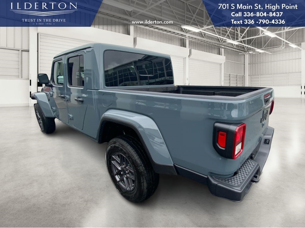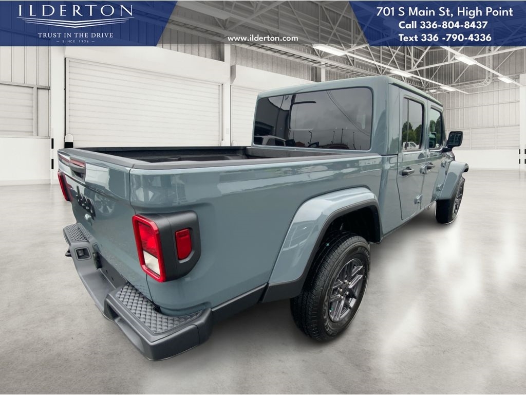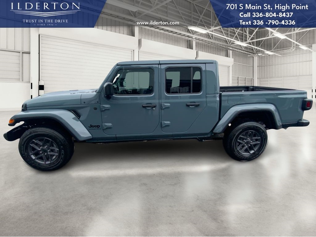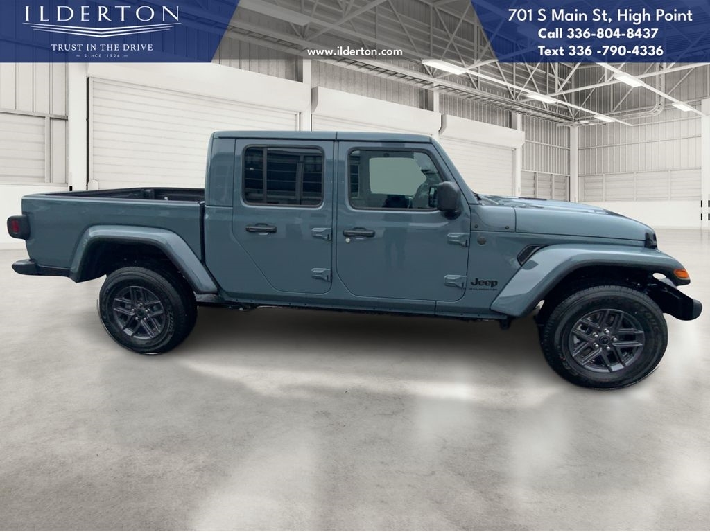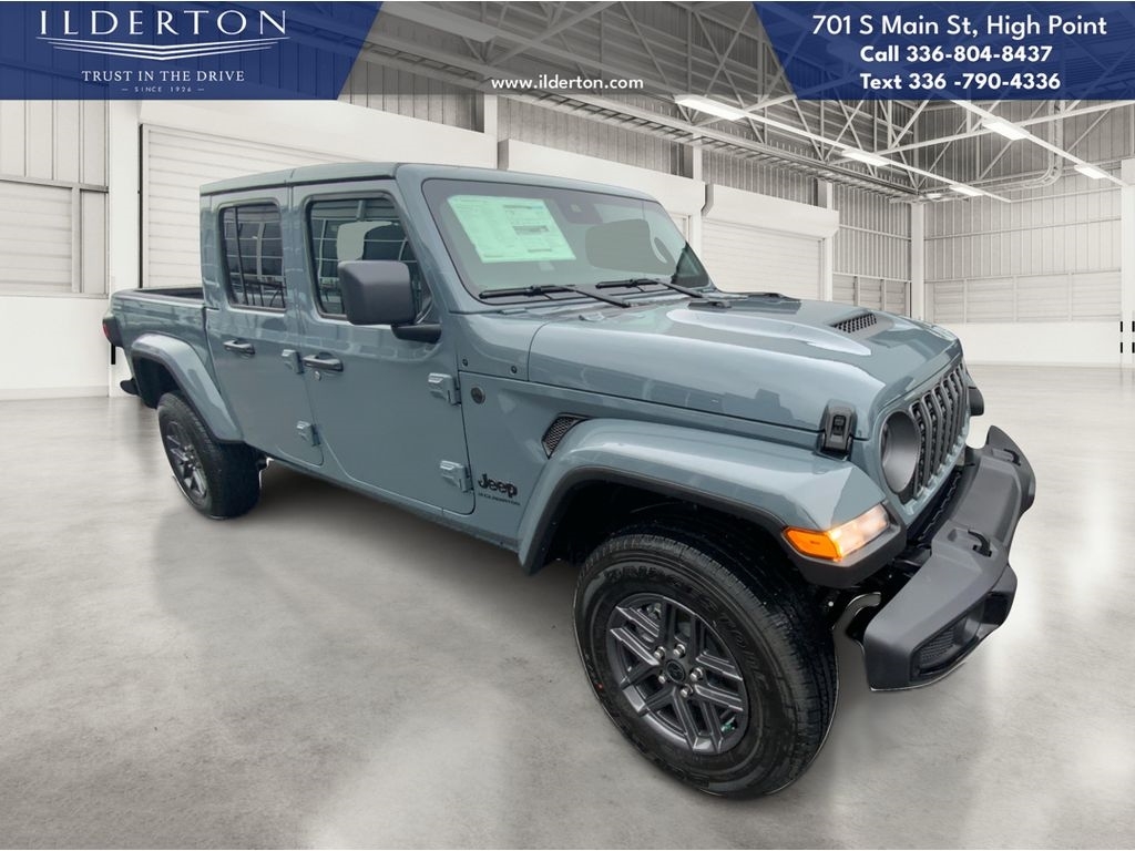 Summary*All New ILDERTON CDJR Advertised Prices Includes all manufacturer incentives that customers may or may not qualify for **All New ILDERTON CDJR Advertised Prices exclude all taxes, tag, doc fee $999, title, registration fees, government fees and dealer installed add-ons. ***All ILDERTON CDJR Advertised Prices Include $1,000 FINANCE CASH ****ILDERTON CDJR Finance Cash is only available on preowned vehicles for prime lender conventional financing arranged by ILDERTON CDJR with a 620 score pulled by dealer, some lender and term restrictions may apply. Offer valid only on preowned vehicles in stock at the time of purchase.EquipmentProtect this 2025 Jeep Gladiator from unwanted accidents with a cutting edge backup camera system. This units Forward Collision Warning system alerts the driver to potential front-end collisions, enhancing safety. This vehicle has auto-adjust speed for safe following. The Jeep Gladiator offers Android Auto for seamless smartphone integration. An off-road package is installed on this unit so you are ready for your four-wheeling best. Apple CarPlay: Seamless smartphone integration for this 2025 Jeep Gladiator - stay connected and entertained on the go! Bluetooth technology is built into this vehicle, keeping your hands on the steering wheel and your focus on the road. The Jeep Gladiator has a V6, 3.6L high output engine. It has four wheel drive capabilities. This 1/2 ton pickup projects refinement with a racy metallic gray exterior. This vehicle has an automatic transmission. Easily set your speed in the Jeep Gladiator with a state of the art cruise control system. Increase or decrease velocity with the touch of a button.PackagesDark Sky Appearance Package: Mold in Color Bumper with Gloss Black; 2-Piece Body Color Fender Flares; Daytime Running Lamp System; Performance Hood. Quick Order Package 24S Sport S: Advanced Brake Assist; 17X 7.5Gray Wheels; Power Heated Mirrors; Enhanced Adaptive Cruise Control; Automatic Headlamps; Normal Duty Plus Suspension; Deep Tint Sunscreen Windows; Premium Wrapped Steering Wheel; Security Alarm; Sun Visors with Illuminated Vanity Mirrors; Full Speed Forward Collision Warning Plus. Body Color 3-Piece Hard Top. Anvil Clearcoat. MOPAR Spray in Bedliner. **Equipment listed is based on original vehicle build and subject to change. Please confirm the accuracy of the included equipment by calling the dealer prior to purchase.**