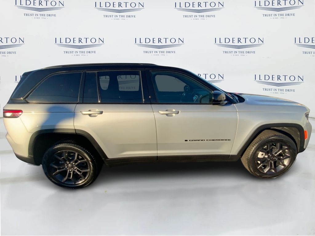 Summary*All New ILDERTON CDJR Advertised Prices Includes all manufacturer incentives that customers may or may not qualify for **All New ILDERTON CDJR Advertised Prices exclude all taxes, tag, doc fee $999, title, registration fees, government fees and dealer installed add-ons. ***All ILDERTON CDJR Advertised Prices Include $1,000 FINANCE CASH ****ILDERTON CDJR Finance Cash is only available on preowned vehicles for prime lender conventional financing arranged by ILDERTON CDJR with a 620 score pulled by dealer, some lender and term restrictions may apply. Offer valid only on preowned vehicles in stock at the time of purchase.EquipmentStart this unit from inside with remote start. Youll never again be lost in a crowded city or a country region with the navigation system on the Jeep Grand Cherokee. This model has automated speed control that adjusts to maintain a safe following distance, enhancing highway driving convenience. This units Forward Collision Warning feature alerts drivers to potential front-end collisions. See whats behind you with the back up camera on the vehicle. The leather seats in this unit are a must for buyers looking for comfort, durability, and style. The Jeep Grand Cherokee is pure luxury with a heated steering wheel. This 2025 Jeep Grand Cherokee features a hands-free Bluetooth phone system. Apple CarPlay: Seamless smartphone integration for this unit - stay connected and entertained on the go! This vehicle comes equipped with Android Auto for seamless smartphone integration on the road. Maintaining a stable interior temperature in this Jeep Grand Cherokee is easy with the climate control system.PackagesQuick Order Package 23E. Trailer Tow Package: Rear Load Levelling Suspension; Full-Size Spare Tire; 7 and 4-Pin Wiring Harness; Heavy-Duty Engine Cooling; 18Full-Size Steel Spare Wheel; Automatic Headlamp Levelling System; Trailer Hitch Zoom; 220 Amp Alternator; Class IV Receiver Hitch. Blackout Model: Delete Limited Badge; 265/50R20 A/S Performance Tires; 20X 8.5Black Painted Aluminum Wheels; Gloss Black Exterior Accents; Dual-Pane Panoramic Sunroof. Dual-Pane Panoramic Sunroof. Silver Zynith. Silver Zynith. **Equipment listed is based on original vehicle build and subject to change. Please confirm the accuracy of the included equipment by calling the dealer prior to purchase.**