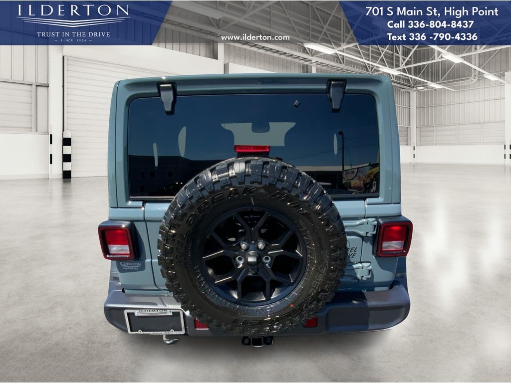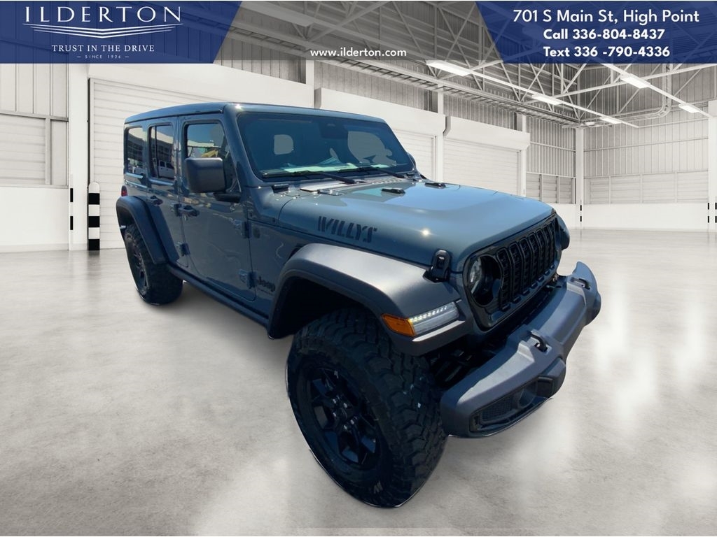 Summary*All New ILDERTON CDJR Advertised Prices Includes all manufacturer incentives that customers may or may not qualify for **All New ILDERTON CDJR Advertised Prices exclude all taxes, tag, doc fee $999, title, registration fees, government fees and dealer installed add-ons. ***All ILDERTON CDJR Advertised Prices Include $1,000 FINANCE CASH ****ILDERTON CDJR Finance Cash is only available on preowned vehicles for prime lender conventional financing arranged by ILDERTON CDJR with a 620 score pulled by dealer, some lender and term restrictions may apply. Offer valid only on preowned vehicles in stock at the time of purchase.EquipmentSee whats behind you with the back up camera on this 2025 Jeep Wrangler . The vehicle offers Android Auto for seamless smartphone integration. This Jeep Wranglers Forward Collision Warning feature alerts drivers to potential front-end collisions. This model features a hands-free Bluetooth phone system. The Jeep Wrangler has auto-adjust speed for safe following. It offers Apple CarPlay for seamless connectivity. It has four wheel drive capabilities. This unit has a 4 Cyl, 2.0L high output engine. This vehicle emanates grace with its stylish gray exterior. This 2025 Jeep Wrangler is equipped with a gasoline engine. The fog lights cut through the weather so you can see whats ahead. Electronic Stability Control is one of many advanced safety features on this vehicle. This vehicle features cruise control for long trips. This unit comes with a manual transmission. This mid-sized SUV is perfect for your next adventure.