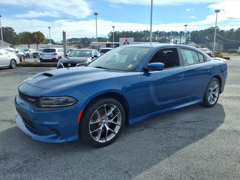 Vehicle DetailsFor sale in Jacksonville, NC: 2021 Dodge Charger GT - powerful V6 performance and rear-wheel-drive excitement at the best price. This sporty, stylish sedan pairs a responsive 3.6L V6 gasoline engine with smooth RWD handling for confident highway cruising and spirited drives around town. The Dodge Charger GT balances performance with everyday comfort, making it a great choice for commuters and enthusiasts alike.Key features include XM Radio for endless entertainment, Hands Free Bluetooth for safe calling and streaming, and a Back-Up Camera plus Rear Parking Sensors to make parking and low-speed maneuvers easy and secure. Remote Start adds convenience on cold mornings or hot afternoons, letting you climate-control the cabin before you step in.The exterior presents a bold, aggressive stance while the interior offers roomy seating and driver-focused controls. This Dodge Charger has been maintained and inspected for reliable service - a smart pre-owned-car buy backed by clear pricing and transparent condition details. Located in Jacksonville, NC, this 2021 Dodge Charger GT is competitively priced to sell quickly and represents the best price in the area for a V6 RWD Dodge Charger with these modern features.Contact us today to schedule a test drive and experience the blend of power, comfort, and value this Dodge Charger GT delivers.EquipmentThe vehicle comes equipped with Android Auto for seamless smartphone integration on the road. Never get into a cold vehicle again with the remote start feature on this Dodge Charger. This vehicle is equipped with the latest generation of XM/Sirius Radio. The vehicle features a hands-free Bluetooth phone system. This large car offers Automatic Climate Control for personalized comfort. This unit offers Apple CarPlay for seamless connectivity. The state of the art park assist system will guide you easily into any spot. Protect the Dodge Charger from unwanted accidents with a cutting edge backup camera system. This large car has a V6, 3.6L high output engine. Quickly unlock this 2021 Dodge Charger with keyless entry. It is rear wheel drive. Set the temperature exactly where you are most comfortable in this vehicle. The fan speed and temperature will automatically adjust to maintain your preferred zone climate. Impresses the most discerning driver with the deep polished blue exterior on this model.PackagesQuick Order Package 2EH. **Equipment li