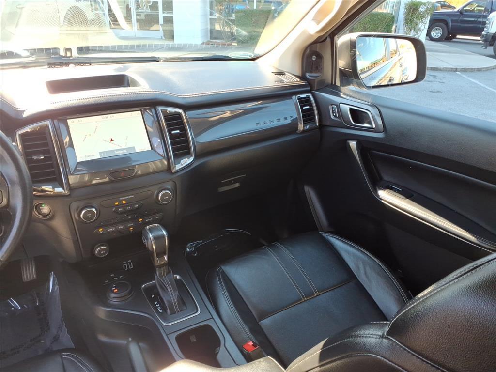 Vehicle DetailsDiscover exceptional value with this 2021 Ford Ranger LARIAT 4WD, located in Trenton, NC. Powered by a responsive 2.3L 4-cylinder gasoline engine, this Ford Ranger blends fuel-efficient performance with the capability you need for work or weekend adventures. The LARIAT trim adds premium comfort and technology, making every drive more enjoyable. Key features include factory Navigation for easy routing, Automatic Climate Control to keep the cabin comfortable, and a Back-Up Camera that enhances safety and parking confidence. Remote Start provides convenience on chilly mornings or hot afternoons, while Adaptive Cruise Control helps reduce driver fatigue on long highway stretches. The automatic transmission ensures smooth shifting and effortless driving in town or off the beaten path. This Ford Ranger LARIAT 4WD is offered at the best price in the area - a competitive value for a well-equipped midsize truck with low wear and dependable Ford engineering. Whether you tow, haul, or commute, this model provides versatility and modern tech features without the new-vehicle price tag. Located in Trenton, NC, this 2021 Ford Ranger LARIAT wont last long at this price. Contact us today to schedule a test drive or to get more details on financing and vehicle history. Secure this quality truck before its gone.EquipmentThis small pickup offers Automatic Climate Control for personalized comfort. This small pickup has automated speed control that adjusts to maintain a safe following distance, enhancing highway driving convenience. The installed navigation system will keep you on the right path. The rear parking assist technology on this model will put you at ease when reversing. The system alerts you as you get closer to an obstruction. This Ford Ranger offers Apple CarPlay for seamless connectivity. Our dealership has already run the CARFAX report and it is clean. A clean CARFAX is a great asset for resale value in the future. This small pickup comes equipped with Android Auto for seamless smartphone integration on the road. This vehicle warns of approaching vehicles with Cross-Traffic Alert. The leather seats in this vehicle are a must for buyers looking for comfort, durability, and style. Bluetooth technology is built into it, keeping your hands on the steering wheel and your focus on the road.PackagesLariat Sport Appearance Package: Sport Box Decal; Black Grille with Magnetic Surround and Bars; Black Whe