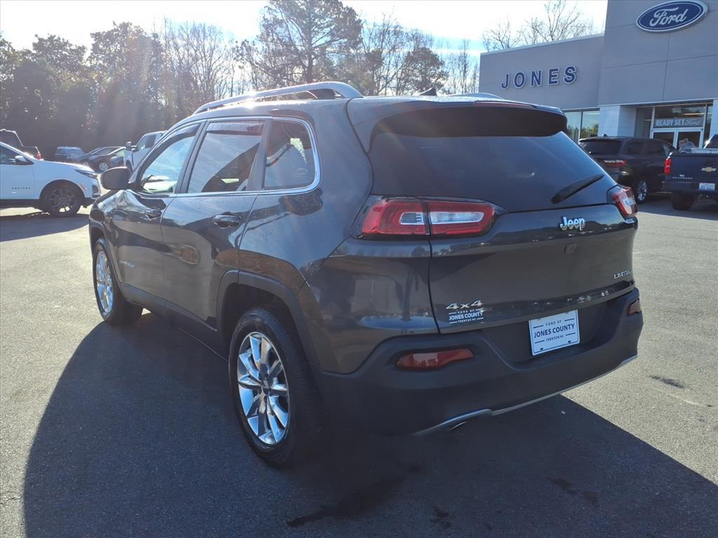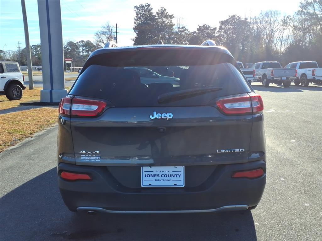 Vehicle Details2016 Jeep Cherokee Limited 4WD - Exceptional Value in Trenton, NC! This 2016 Jeep Cherokee Limited is a standout compact SUV, featuring a fuel-efficient 4-cylinder 2.4L gasoline engine and reliable 4WD for confident handling in all seasons. Located in Trenton, NC, this Jeep Cherokee Limited combines refined comfort with capable performance and advanced tech-available now at the best price in the area. Comfort and convenience are front and center with luxurious leather seats, automatic climate control for personalized temperature settings, and an intuitive navigation system to guide your next adventure. Safety and ease of use are enhanced with a back-up camera for parking confidence and improved visibility. Enjoy premium entertainment on the road with XM Radio and a well-designed interior that balances style and functionality. This Jeep Cherokee Limited is ideal for drivers who want a versatile daily commuter or a weekend explorer with refined amenities and 4WD traction. The 4-cylinder 2.4L engine delivers balanced fuel economy without sacrificing responsive performance, making it a smart choice for city streets and light off-road excursions alike. Located in Trenton, NC, and priced to move, this Jeep Cherokee Limited represents the best value for buyers seeking comfort, technology, and dependable four-wheel capability. Dont miss out on this competitively priced 2016 Jeep Cherokee Limited-visit today to experience it for yourself.EquipmentThis unit is equipped with the latest generation of XM/Sirius Radio. Bluetooth technology is built into this vehicle, keeping your hands on the steering wheel and your focus on the road. The Jeep Cherokee keeps you comfortable with Auto Climate. The leather seats in the vehicle are a must for buyers looking for comfort, durability, and style. Protect this model from unwanted accidents with a cutting edge backup camera system. Keep your hands warm all winter with a heated steering wheel in this mid-size suv . Youll never again be lost in a crowded city or a country region with the navigation system on this mid-size suv. Start this 2016 Jeep Cherokee from inside with remote start. Quickly unlock this 2016 Jeep Cherokee with keyless entry. Set the temperature exactly where you are most comfortable in this unit. The fan speed and temperature will automatically adjust to maintain your preferred zone climate.PackagesQuick Order Package 21G. Quick Order Packa