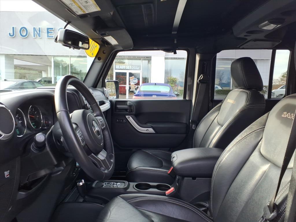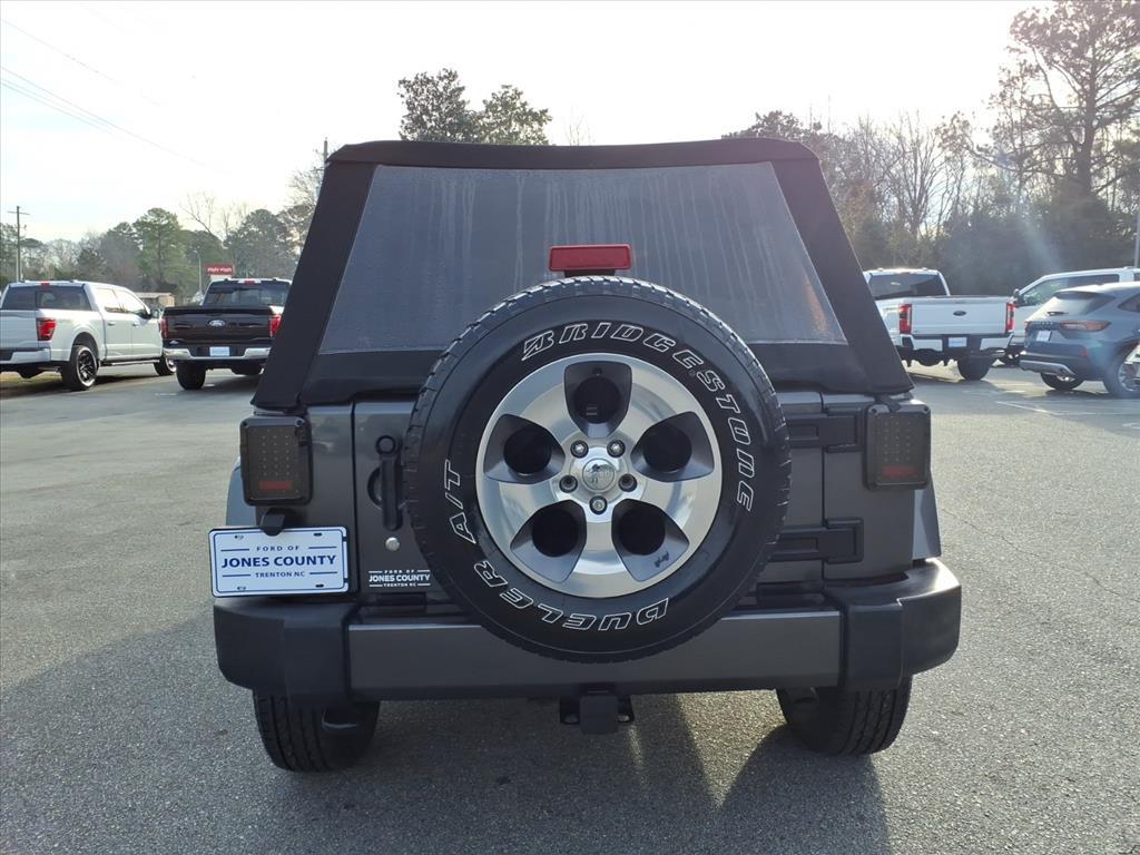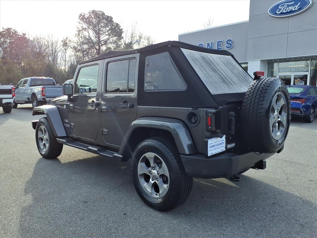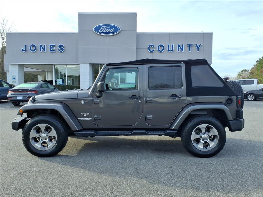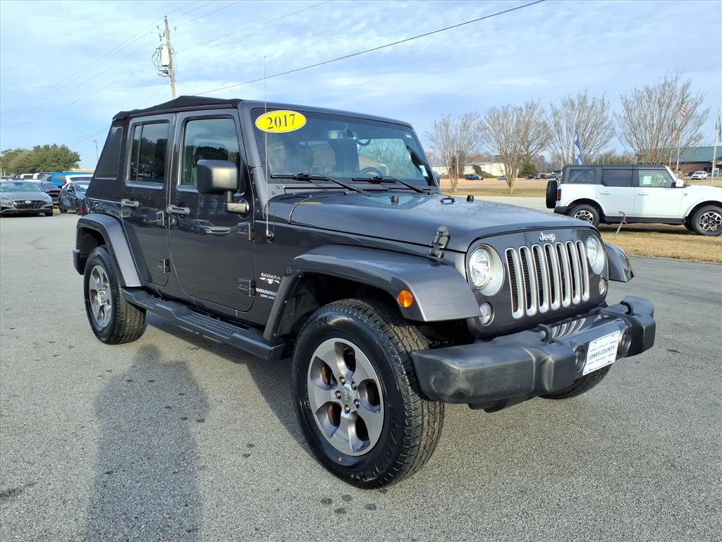 Vehicle DetailsDiscover the ultimate adventure-ready 2017 Jeep Wrangler Sahara, now available in Trenton, NC. This rugged yet refined SUV pairs legendary 4WD capability with a powerful V6 3.6L gasoline engine and just 39,491 miles - delivering confident performance whether youre tackling back roads or cruising town streets. The Sahara trim elevates comfort with premium leather seats, giving the interior a sophisticated feel while retaining Jeep Wranglers iconic versatility. This Jeep Wrangler comes with a CARFAX Clean Report, so you can buy with confidence knowing this vehicles history is transparent. Stay connected and hands-free on every drive thanks to built-in Bluetooth connectivity, perfect for calls and streaming music without distraction. The combination of low miles, proven reliability, and practical tech makes this Jeep Wrangler an exceptional value. Priced to move - this 2017 Jeep Wrangler Sahara offers the best price in the area for discerning buyers seeking a capable 4WD SUV thats ready for daily driving and weekend adventures. Located in Trenton, NC, its conveniently available for local test drives and immediate take-home. Dont miss your chance to own a meticulously maintained Jeep Wrangler that blends comfort, capability, and a clean vehicle history. Contact us today to schedule a showing or to get more details about this standout 2017 Jeep Wrangler Sahara before its gone.EquipmentThis vehicle has a clean CARFAX vehicle history report. The leather seats in the Jeep Wrangler are a must for buyers looking for comfort, durability, and style. This unit features a hands-free Bluetooth phone system. Set the temperature exactly where you are most comfortable in the vehicle. The fan speed and temperature will automatically adjust to maintain your preferred zone climate. This mid-size suv emanates grace with its stylish gray exterior. This unit has a V6, 3.6L high output engine. This unit has four wheel drive capabilities. Easily set your speed in the vehicle with a state of the art cruise control system. Increase or decrease velocity with the touch of a button. The fog lights cut through the weather so you can see whats ahead. Enjoy the tried and true gasoline engine in this model. It has an automatic transmission. Electronic Stability Control is one of many advanced safety features on the Jeep Wrangler.PackagesQuick Order Package 24G: Body Color/accent Color Grille; Body Color Appliques Front Bump