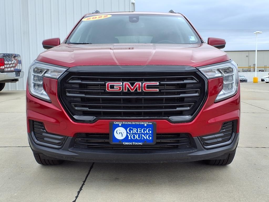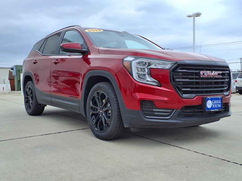 Our versatile 2022 GMC Terrain SLE AWD with the Driver Convenience Package is smartly equipped for better driving in Cayenne Red Tintcoat! Motivated by a TurboCharged 1.5 Liter 4 Cylinder offering 170hp matched to a 9 Speed Automatic transmission so you can explore your world with confidence. This All Wheel Drive SUV also scores nearly 29mpg on the highway with bold good looks crafted to grab attention. Signature LED lighting sets the tone with head-turning alloy wheels, a roof rack with side rails, and heated power mirrors. Its an appearance thats hard to ignore! Roomy and ready for fun, our SLE cabin treats you right with our packages supportive premium-cloth seats, a multifunction steering wheel, remote start, dual-zone climate control, keyless access/ignition, 12V power outlets, and impressive infotainment technology. Some highlights are a 7-inch touchscreen, WiFi compatibility, Android Auto/Apple CarPlay, Bluetooth, and a six-speaker sound system. You better see this one for yourself for a better view of our Terrains other benefits! GMC helps keep you out of harms way with a backup camera, automatic braking, lane-keeping assistance, a rear-seat reminder, hill-descent control, and more. Own our Terrain SLE and answer the call of adventure today. Save this Page and Call for Availability. We Know You Will Enjoy Your Gregg Young Toyota of Columbus Test Drive Towards Ownership!