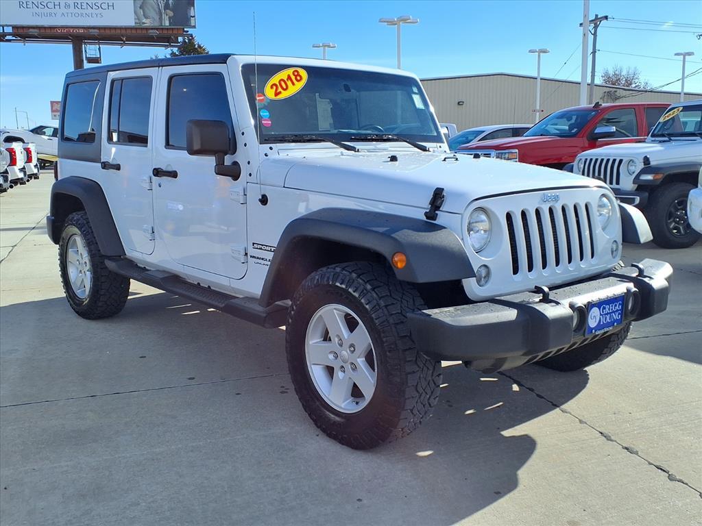 Our classic 2018 Jeep Wrangler JK Sport 4 Door 4X4 is more than ready to keep up with your active lifestyle in Bright White! Powered by an award-winning 3.6 Liter Pentastar V6 offering 285hp paired to robust 5 Speed Automatic transmission for trail-friendly performance. Along with legendary capability, this Four Wheel Drive SUV returns nearly 21mpg on the highway. It shows off iconic styling with a bold grille, fog lamps, rugged fender flares, and a top and doors that are easy to remove for the ultimate open-air driving experience. Look at our Sports versatile cabin, and youll see its tailor-made for tough conditions. It features comfortable cloth seats, a folding/removable second row, and even drain plugs that make washing out the interior a simple task. The eight-speaker AM/FM/CD/MP3 audio system lets you add the perfect soundtrack to every adventure! Whether blazing trails or taking care of business, Jeep also safeguards your travels with a high-strength steel frame bolstered by a backup camera, ABS, hill-start assist, stability/traction control, and advanced airbags. Its time to reward yourself with this tremendously capable Wrangler JK Sport! Save this Page and Call for Availability. We Know You Will Enjoy Your Gregg Young Toyota of Columbus Test Drive Towards Ownership!