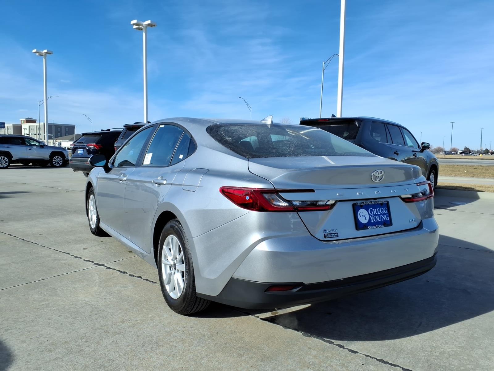 Our 2026 Toyota Camry LE Sedan blends refined performance and an elevated design in Celestial Silver Metallic! Powered by a 2.5 Liter 4 Cylinder and 2 Electric Motors offering a combined 225hp to an eCVT with Sport, Eco, Normal, and EV driving modes. Also impressively efficient, this Front Wheel Drive sedan achieves nearly 53mpg in the city and nearly 51mpg on the highway. Our Camry shows its stylish side with an aggressive grille, LED lighting, alloy wheels, and heated power mirrors with built-in turn signals. Come see our LE cabin and experience its modern comfort for yourself. Youll find supportive fabric seats, a multifunction steering wheel, dual-zone automatic climate control, pushbutton ignition, and keyless access. Looking to connect on the go Check out the smart infotainment system with an 8-inch touchscreen, 7-inch driver display, wireless Apple CarPlay/Android Auto, WiFi compatibility, Bluetooth, wireless charging, voice control, Cloud Navigation compatibility, and six-speaker audio. Theres no substitute for intelligent safety, so Toyota supplies Proactive Driving Assist, blind-spot monitoring, automatic braking, adaptive cruise control, lane-keeping assistance, a rearview camera, pedestrian detection, and more. You deserve our Camry LE because every day deserves more fun! Save this Page and Call for Availability. We Know You Will Enjoy Your Gregg Young Toyota of Columbus Test Drive Towards Ownership!