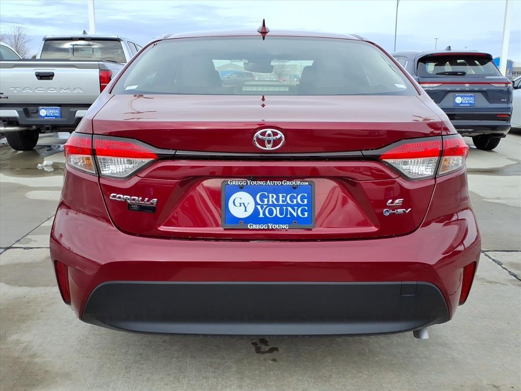 Our 2026 Toyota Corolla Hybrid LE Sedan delivers fuel-efficient performance, advanced safety, and all-weather confidence wrapped in sleek Ruby Flare Pearl style. Powered by a 1.8 Liter 4 Cylinder and an Electric Motor offering a combined 138hp to an eCVT for peppy performance. Known for its impressive efficiency, this Front Wheel Drive sedan also sees nearly 51mpg in the city and nearly 44mpg on the highway. Sporty design cues help our Corolla Hybrid stand out with LED lighting, a bold black grille, and aggressive wheels. Youve got room to move in our LE cabin, which is well-equipped with premium-fabric seats, a folding back row, a multifunction steering wheel, automatic climate control, power accessories, keyless access, a front center console, and a 4.2-inch driver display. An intelligent infotainment system helps you connect to your world by bundling an 8-inch touchscreen, WiFi compatibility, Bluetooth, wireless Apple CarPlay/Android Auto, voice command, and six-speaker audio. Many of Toyotas top safety features are on board for your peace of mind, starting with Proactive Driving Assist supported by automatic braking, forward collision warning, lane-departure alert, pedestrian detection, adaptive cruise control, a rearview camera, and more. Easy to own, our Corolla Hybrid LE is a fuel-efficient, fun machine! Save this Page and Call for Availability. We Know You Will Enjoy Your Gregg Young Toyota of Columbus Test Drive Towards Ownership!
