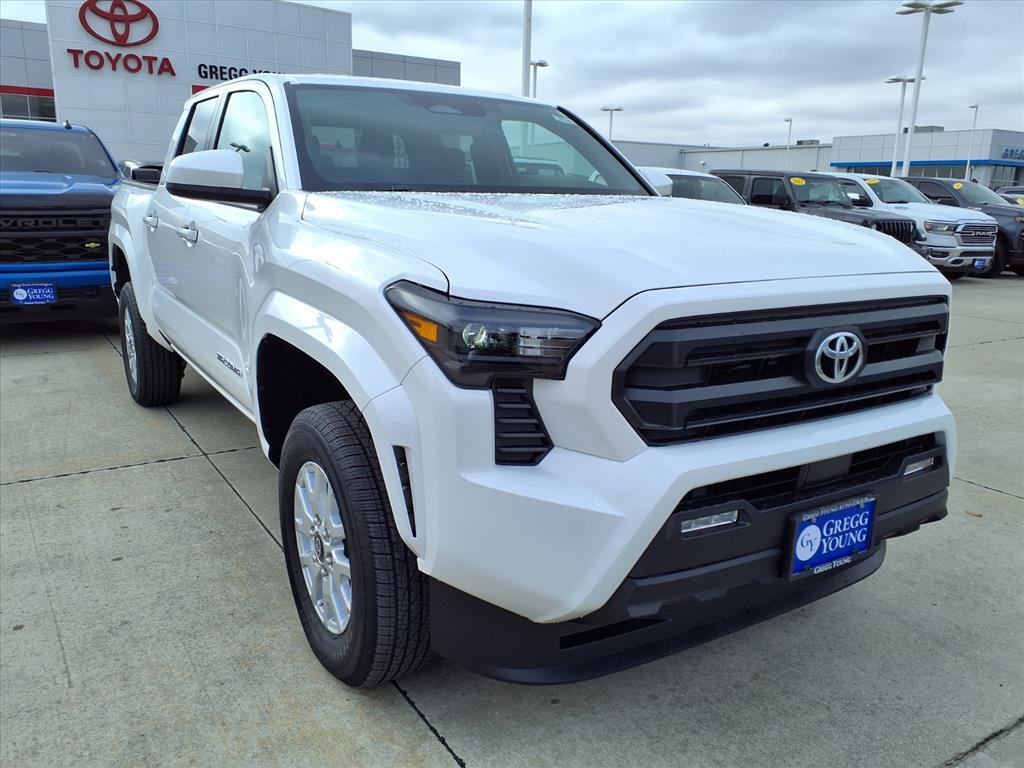 A bold blend of strength and style, our 2025 Toyota Tacoma SR5 Double Cab 4X4 in Wind Chill Pearl delivers legendary off-road capability, advanced tech, and rugged design, perfect for tackling tough trails or turning heads around town! Powered by a TurboCharged 2.4 Liter i-FORCE 4 Cylinder providing 278hp to an 8 Speed Automatic transmission for strength to spare. An automatic limited-slip differential and 2-speed transfer case deliver dynamic traction, and this Four Wheel Drive truck sees nearly 24mpg on the highway with an expressive design. Our Tacoma is ready to take on your world with alloy wheels, LED lighting, a bold grille, a Class IV hitch receiver, and a rugged Sheet Molded Compound bed that resists scuffs and scratches. Load it up and put it to the test! Configured for commanding comfort, our SR5 cabin features supportive cloth heated front seats with rear under-seat storage, a multifunction steering wheel, manual climate control, keyless access, push-button ignition, and a 7-inch driver display that keeps essential information easily visible. The infotainment system makes it easy to connect with an 8-inch touchscreen, voice control, Apple CarPlay, Android Auto, WiFi compatibility, Bluetooth, and six-speaker audio. Toyota takes a proactive approach to safety with features such as Proactive Driving Assist, blind-spot monitoring, automatic braking, adaptive cruise control, a rearview camera, lane-keeping assistance, and more. With all that, our Tacoma SR5 is a legendary leader that owners love! Save this Page and Call for Availability. We Know You Will Enjoy Your Test Drive Towards Ownership!