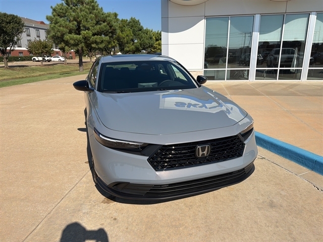 Urban Gray Pearl 2025 Honda Accord Hybrid Sport FWD eCVT 2.0L I4 DOHC 16V Skyway Honda, located in Enid, OK, is proud to be your Up-Front, No-Haggle, No-Hassle Honda dealership. We offer a straightforward and stress-free car-buying experience, ensuring that you get the best deal without any surprises. Our expert sales team is dedicated to helping you find the perfect vehicle, and with our low doc fees and unbeatable prices, driving a little to save a lot has never been easier. Were just 90 minutes away from OKC, Tulsa, and Wichita - so give us a try before you buy and enjoy the lowest prices around! 46/41 City/Highway MPG