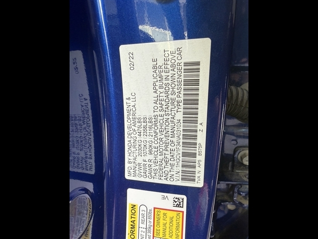 Check out all these great options 4-Wheel Disc Brakes, 8 Speakers, ABS brakes, Adaptive Cruise Control: Adaptive Cruise Control (ACC) with Low-Speed Follow, Air Conditioning, Alloy wheels, AM/FM radio, Apple CarPlay/Android Auto, Auto High-beam Headlights, Automatic temperature control, Brake assist, Bumpers: body-color, Delay-off headlights, Driver door bin, Driver vanity mirror, Dual front impact airbags, Dual front side impact airbags, Electronic Stability Control, Emergency communication system: HondaLink, Exterior Parking Camera Rear, Fabric w/Synthetic Leather Seat Trim, Forward collision: Collision Mitigation Braking System (CMBS) FCW mitigation, Four wheel independent suspension, Front anti-roll bar, Front Bucket Seats, Front Center Armrest, Front dual zone A/C, Front fog lights, Front reading lights, Fully automatic headlights, Illuminated entry, Knee airbag, Lane Departure Warning System, Leather Shift Knob, Leather steering wheel, Low tire pressure warning, Occupant sensing airbag, Outside temperature display, Overhead airbag, Overhead console, Panic alarm, Passenger door bin, Passenger vanity mirror, Power door mirrors, Power driver seat, Power steering, Power windows, Radio data system, Radio: 180-Watt AM/FM Audio System, Rear anti-roll bar, Rear seat center armrest, Rear window defroster, Remote keyless entry, Security system, Speed control, Speed-sensing steering, Speed-Sensitive Wipers, Split folding rear seat, Spoiler, Steering wheel mounted audio controls, Tachometer, Telescoping steering wheel, Tilt steering wheel, Traction control, Trip computer, Variably intermittent wipers, and Wheels: 19Machine-Finished Alloy w/Black Inserts. Clean CARFAX. Still Night Pearl 29/35 City/Highway MPG http://www.realdeal.com/