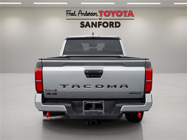 Check out all these great options 18Alloy Wheels, 3.583 Axle Ratio, 4-Wheel Disc Brakes, 6 Speakers, ABS brakes, Air Conditioning, Alloy wheels, AM/FM radio: SiriusXM, Anti-whiplash front head restraints, Apple CarPlay/Android Auto, Auto High-beam Headlights, Auto-dimming Rear-View mirror, Automatic temperature control, Brake assist, Bumpers: body-color, Driver door bin, Driver vanity mirror, Dual front impact airbags, Dual front side impact airbags, Electronic Stability Control, Emergency communication system: Safety Connect (1-year trial), Exterior Parking Camera Rear, Fabric Seat Trim, Four wheel independent suspension, Front anti-roll bar, Front Bucket Seats, Front Center Armrest, Front fog lights, Front reading lights, Fully automatic headlights, Heated door mirrors, Illuminated entry, JBL Premium Audio, Knee airbag, Leather Shift Knob, Leather steering wheel, Low tire pressure warning, Navigation system: Drive Connect (1 year trial) includes Cloud Navigation with real time traffic and Google POI, Occupant sensing airbag, Outside temperature display, Overhead airbag, Overhead console, Panic alarm, Passenger door bin, Passenger vanity mirror, Power door mirrors, Power steering, Power windows, Radio: 14Toyota Audio Multimedia, Radio: 8Toyota Audio Multimedia, Rear step bumper, Rear window defroster, Remote keyless entry, Security system, SofTex Seat Trim, Speed control, Speed-sensing steering, Split folding rear seat, Steering wheel mounted audio controls, Tachometer, Telescoping steering wheel, Tilt steering wheel, Traction control, Trip computer, Turn signal indicator mirrors, and Variably intermittent wipers Fred Anderson Family Plan Sanford in NC When you purchase a new Toyota from Fred Anderson Toyota of Sanford, your new vehicle will come with a complimentary 3 day piece of mind guarantee, good at participating dealers. It will also include lifetime oil changes, loaner cars, car washes, and special loyalty discounts. In short, Fred Anderson Toyota of Sanford offers great prices, and has a special plan that will help you reduce the cost of your new Toyota. Priced below KBB Fair Purchase Price! 4D Crew Cab 2025 Toyota Tacoma Hybrid 4WD TRD Off Road Celestial Silver M 8-Speed Automatic 2.4L I4 PDI Hybrid Turbocharged DOHC 16V Excludes dealer-installed options, tax, tag, registration and $799 administrative service fee. Some Options may not be on all cars as described. We have many other cars with options like Toyota Saftey Sense C TSS-C and Toy