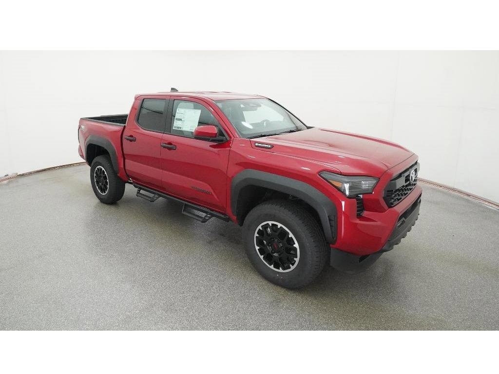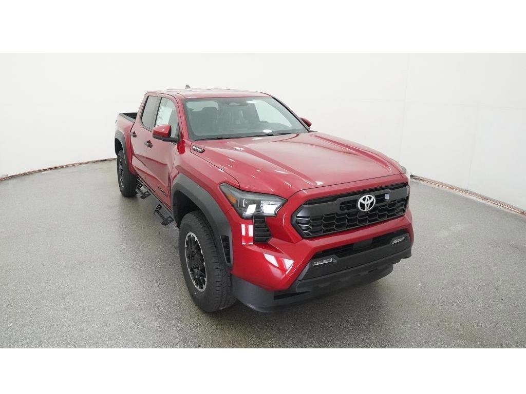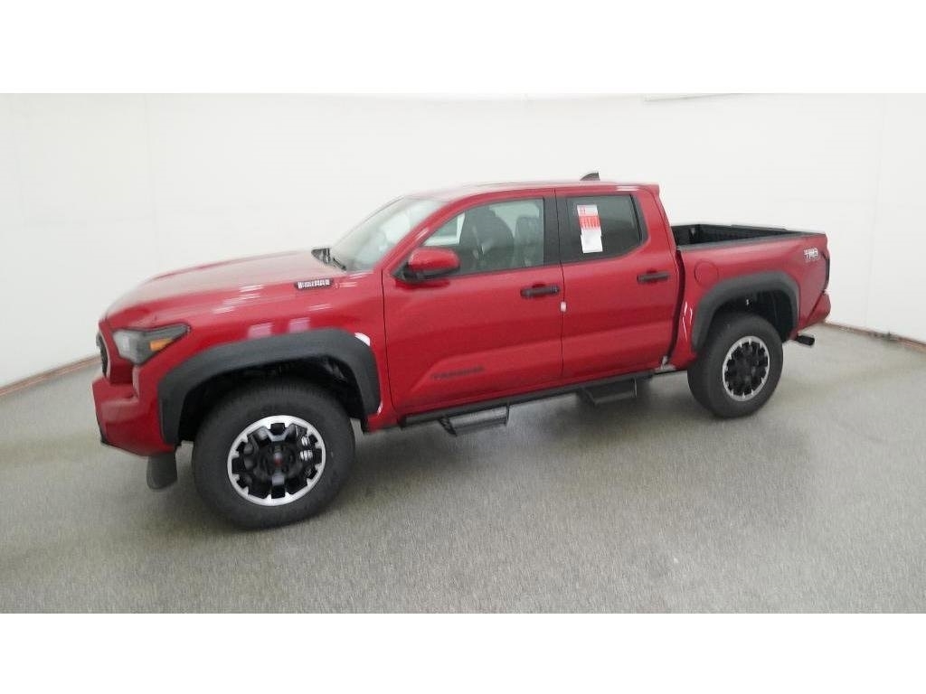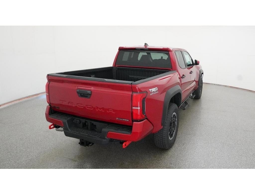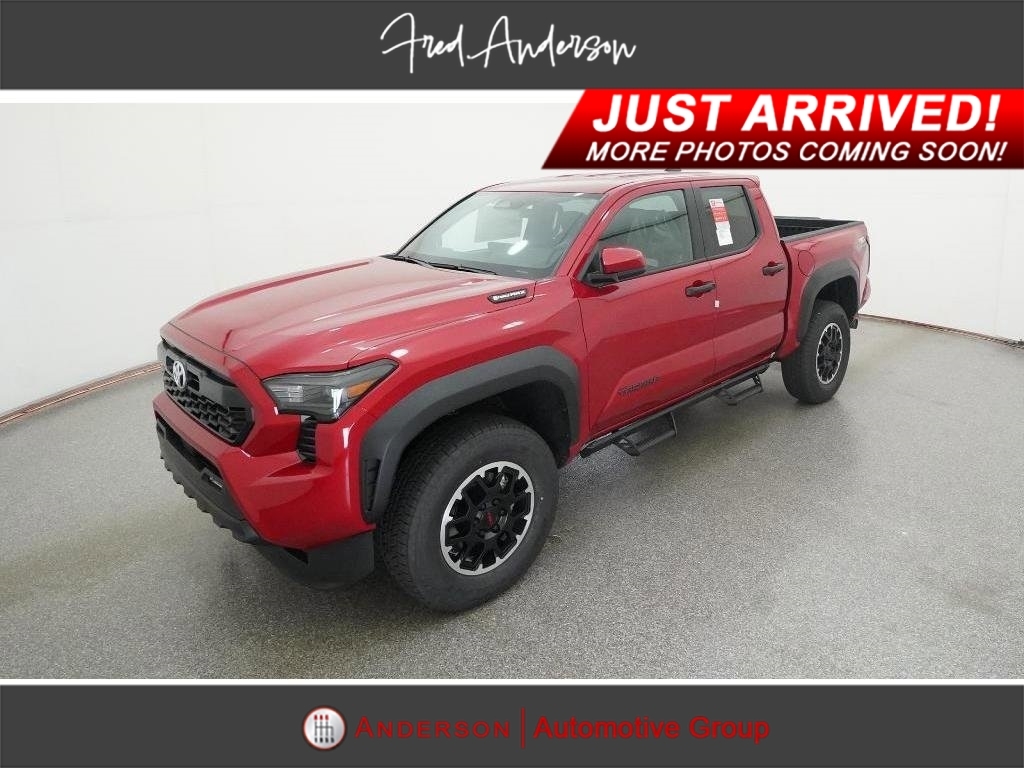 Check out all these great options 18Alloy Wheels, 3.583 Axle Ratio, 4-Wheel Disc Brakes, 6 Speakers, ABS brakes, Air Conditioning, Alloy wheels, AM/FM radio: SiriusXM, Anti-whiplash front head restraints, Apple CarPlay/Android Auto, Auto High-beam Headlights, Auto-dimming Rear-View mirror, Automatic temperature control, Brake assist, Bumpers: body-color, Driver door bin, Driver vanity mirror, Dual front impact airbags, Dual front side impact airbags, Electronic Stability Control, Emergency communication system: Safety Connect (1-year trial), Exterior Parking Camera Rear, Fabric Seat Trim, Four wheel independent suspension, Front anti-roll bar, Front Bucket Seats, Front Center Armrest, Front fog lights, Front reading lights, Fully automatic headlights, Heated door mirrors, Illuminated entry, JBL Premium Audio, Knee airbag, Leather Shift Knob, Leather steering wheel, Low tire pressure warning, Navigation system: Drive Connect (1 year trial) includes Cloud Navigation with real time traffic and Google POI, Occupant sensing airbag, Outside temperature display, Overhead airbag, Overhead console, Panic alarm, Passenger door bin, Passenger vanity mirror, Power door mirrors, Power steering, Power windows, Radio: 14Toyota Audio Multimedia, Radio: 8Toyota Audio Multimedia, Rear step bumper, Rear window defroster, Remote keyless entry, Security system, SofTex Seat Trim, Speed control, Speed-sensing steering, Split folding rear seat, Steering wheel mounted audio controls, Tachometer, Telescoping steering wheel, Tilt steering wheel, Traction control, Trip computer, Turn signal indicator mirrors, and Variably intermittent wipers Fred Anderson Family Plan Sanford in NC When you purchase a new Toyota from Fred Anderson Toyota of Sanford, your new vehicle will come with a complimentary 3 day piece of mind guarantee, good at participating dealers. It will also include lifetime oil changes, loaner cars, car washes, and special loyalty discounts. In short, Fred Anderson Toyota of Sanford offers great prices, and has a special plan that will help you reduce the cost of your new Toyota. Priced below KBB Fair Purchase Price! 4D Crew Cab 2025 Toyota Tacoma Hybrid 4WD TRD Off Road Supersonic Red 8-Speed Automatic 2.4L I4 PDI Hybrid Turbocharged DOHC 16V Excludes dealer-installed options, tax, tag, registration and $799 administrative service fee. Some Options may not be on all cars as described. We have many other cars with options like Toyota Saftey Sense C TSS-C and Toyota