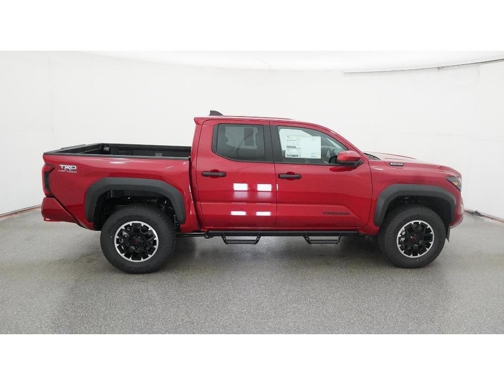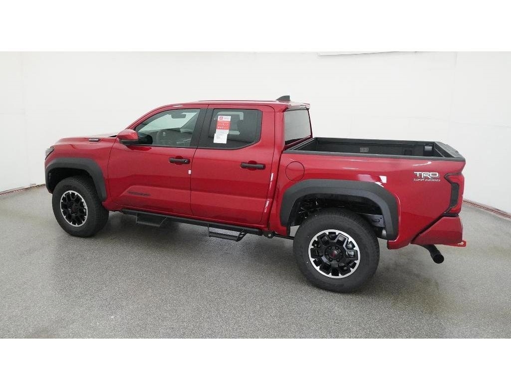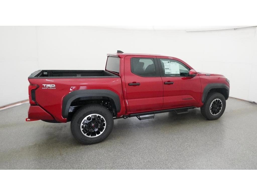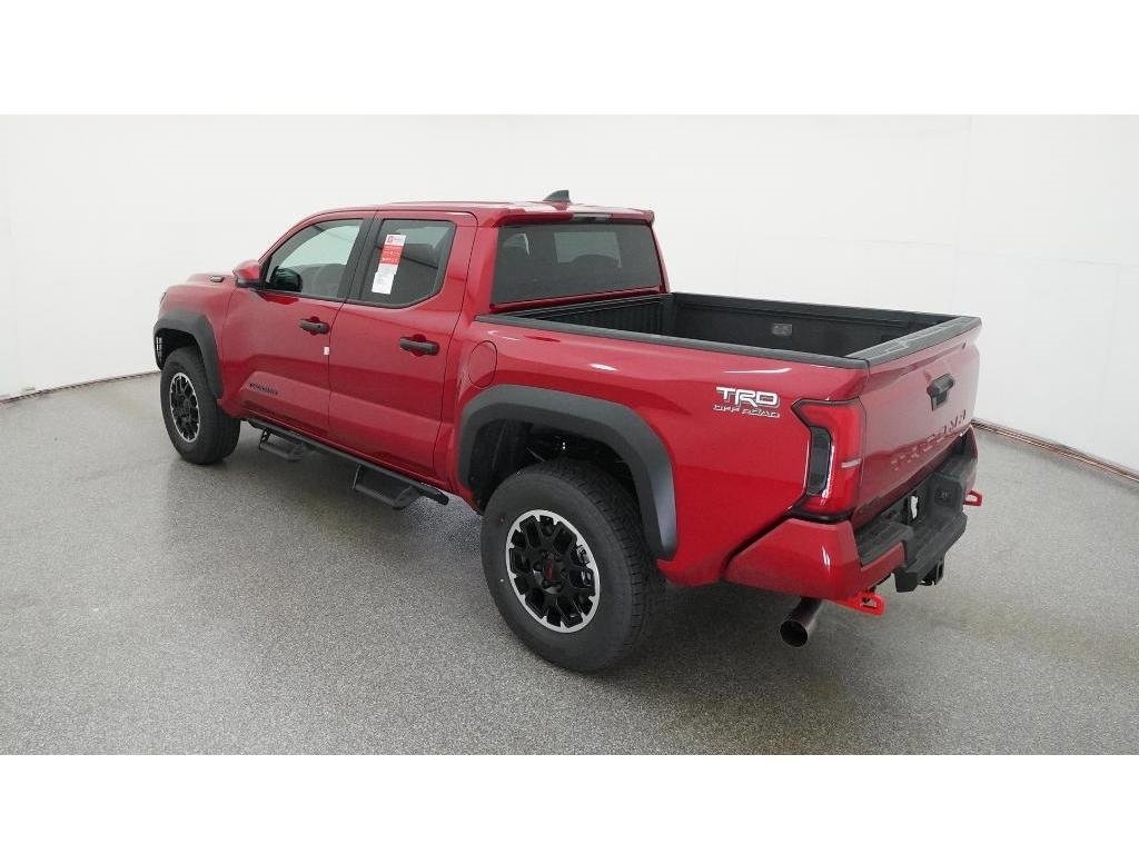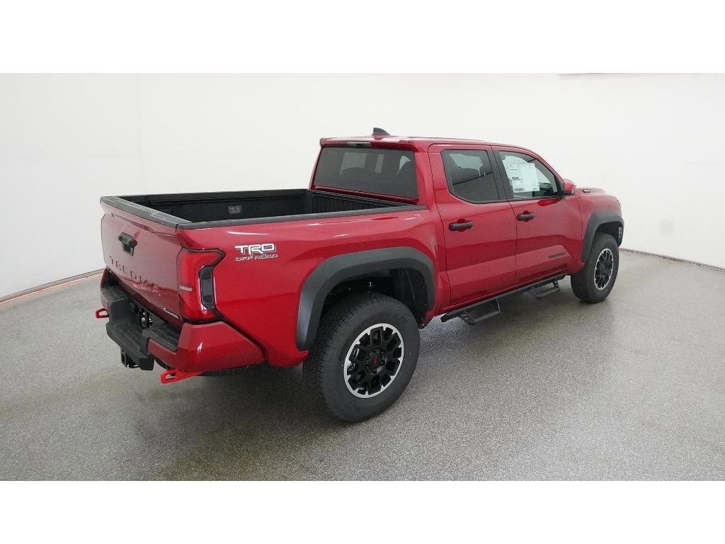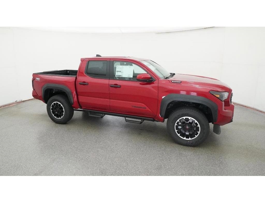 Check out all these great options 18Alloy Wheels, 3.583 Axle Ratio, 4-Wheel Disc Brakes, 6 Speakers, ABS brakes, Air Conditioning, Alloy wheels, AM/FM radio: SiriusXM, Anti-whiplash front head restraints, Apple CarPlay/Android Auto, Auto High-beam Headlights, Auto-dimming Rear-View mirror, Automatic temperature control, Brake assist, Bumpers: body-color, Driver door bin, Driver vanity mirror, Dual front impact airbags, Dual front side impact airbags, Electronic Stability Control, Emergency communication system: Safety Connect (1-year trial), Exterior Parking Camera Rear, Fabric Seat Trim, Four wheel independent suspension, Front anti-roll bar, Front Bucket Seats, Front Center Armrest, Front fog lights, Front reading lights, Fully automatic headlights, Heated door mirrors, Illuminated entry, JBL Premium Audio, Knee airbag, Leather Shift Knob, Leather steering wheel, Low tire pressure warning, Navigation system: Drive Connect (1 year trial) includes Cloud Navigation with real time traffic and Google POI, Occupant sensing airbag, Outside temperature display, Overhead airbag, Overhead console, Panic alarm, Passenger door bin, Passenger vanity mirror, Power door mirrors, Power steering, Power windows, Radio: 14Toyota Audio Multimedia, Radio: 8Toyota Audio Multimedia, Rear step bumper, Rear window defroster, Remote keyless entry, Security system, SofTex Seat Trim, Speed control, Speed-sensing steering, Split folding rear seat, Steering wheel mounted audio controls, Tachometer, Telescoping steering wheel, Tilt steering wheel, Traction control, Trip computer, Turn signal indicator mirrors, and Variably intermittent wipers Fred Anderson Family Plan Sanford in NC When you purchase a new Toyota from Fred Anderson Toyota of Sanford, your new vehicle will come with a complimentary 3 day piece of mind guarantee, good at participating dealers. It will also include lifetime oil changes, loaner cars, car washes, and special loyalty discounts. In short, Fred Anderson Toyota of Sanford offers great prices, and has a special plan that will help you reduce the cost of your new Toyota. Priced below KBB Fair Purchase Price! 4D Crew Cab 2025 Toyota Tacoma Hybrid 4WD TRD Off Road Supersonic Red 8-Speed Automatic 2.4L I4 PDI Hybrid Turbocharged DOHC 16V Excludes dealer-installed options, tax, tag, registration and $799 administrative service fee. Some Options may not be on all cars as described. We have many other cars with options like Toyota Saftey Sense C TSS-C and Toyota