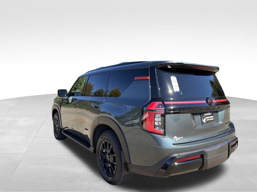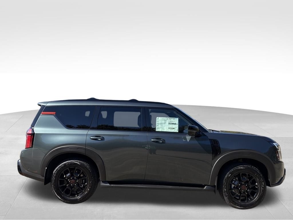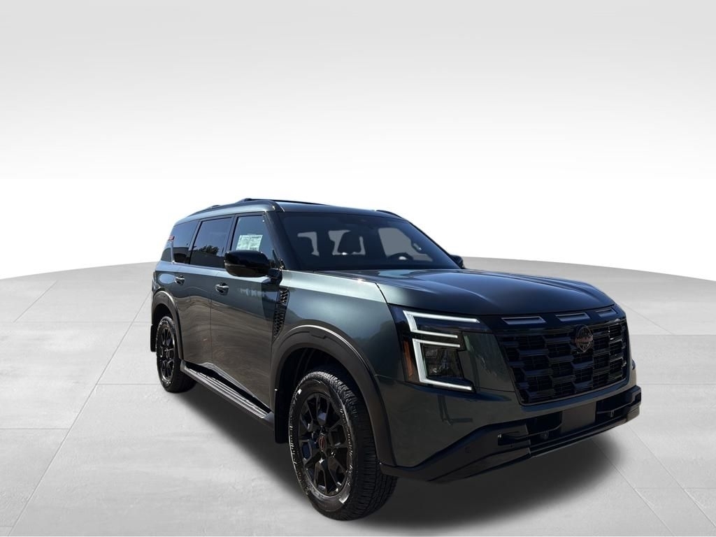 2026 Nissan Armada Alpine Metallic 3.5L DOHC PRO-4X 4WD. Check out all these great options Convenience Package, PRO-4X Premium Package w/Split Bench (Biometric Cooling, Climate Controlled Heated & Ventilated Front Seats, Hands-Free Power Liftgate, Heated 2nd Row Seats, In-Car Camera, Intelligent Dash Cam, Intelligent Rear View Mirror (I-RVM), and Panoramic Moonroof), 4WD, 12 Speakers, 3rd row seats: split-bench, 4-Wheel Disc Brakes, ABS brakes, Adaptive suspension, Air Conditioning, Alloy wheels, AM/FM radio: SiriusXM w/360L, Anti-whiplash front head restraints, Apple CarPlay/Android Auto, Auto High-beam Headlights, Auto tilt-away steering wheel, Auto-dimming door mirrors, Auto-dimming Rear-View mirror, Auto-leveling suspension, Automatic temperature control, Brake assist, Bumpers: body-color, Compass, Cross Bars, Delay-off headlights, Driver door bin, Driver vanity mirror, Dual front impact airbags, Dual front side impact airbags, Electronic Stability Control, Emergency communication system: NissanConnect Services, Four wheel independent suspension, Front anti-roll bar, Front Bucket Seats, Front Center Armrest, Front dual zone A/C, Front fog lights, Front reading lights, Fully automatic headlights, Garage door transmitter: myQ Connected Garage, Genuine wood dashboard insert, Heated door mirrors, Heated Front Bucket Seats, Heated front seats, Heated steering wheel, HVAC memory, Illuminated entry, Illuminated Kick Plates, Knee airbag, Leather steering wheel, Low tire pressure warning, Memory seat, Navigation system: Google Maps, Occupant sensing airbag, Outside temperature display, Overhead airbag, Overhead console, Panic alarm, Passenger door bin, Passenger vanity mirror, Power door mirrors, Power driver seat, Power Liftgate, Power passenger seat, Power steering, Power windows, Premium Paint, PRO-4X Carpeted Floor Mats w/Bench Seat, PRO-4X Leather Quilted Insert Seat Trim, PRO-4X Mud Guards, Radio: NissanConnect w/SiriusXM 360L, Rain sensing wipers, Rear air conditioning, Rear anti-roll bar, Rear reading lights, Rear seat center armrest, Rear window defroster, Rear window wiper, Reclining 3rd row seat, Remote keyless entry, Security system, Speed control, Speed-sensing steering, Speed-Sensitive Wipers, Split folding rear seat, Spoiler, Steering wheel memory, Steering wheel mounted audio controls, Tachometer, Telescoping steering wheel, Tilt steering wheel, Traction control, Trip computer, Turn signal indicator mirrors, Variably intermittent wipers, Voltmet