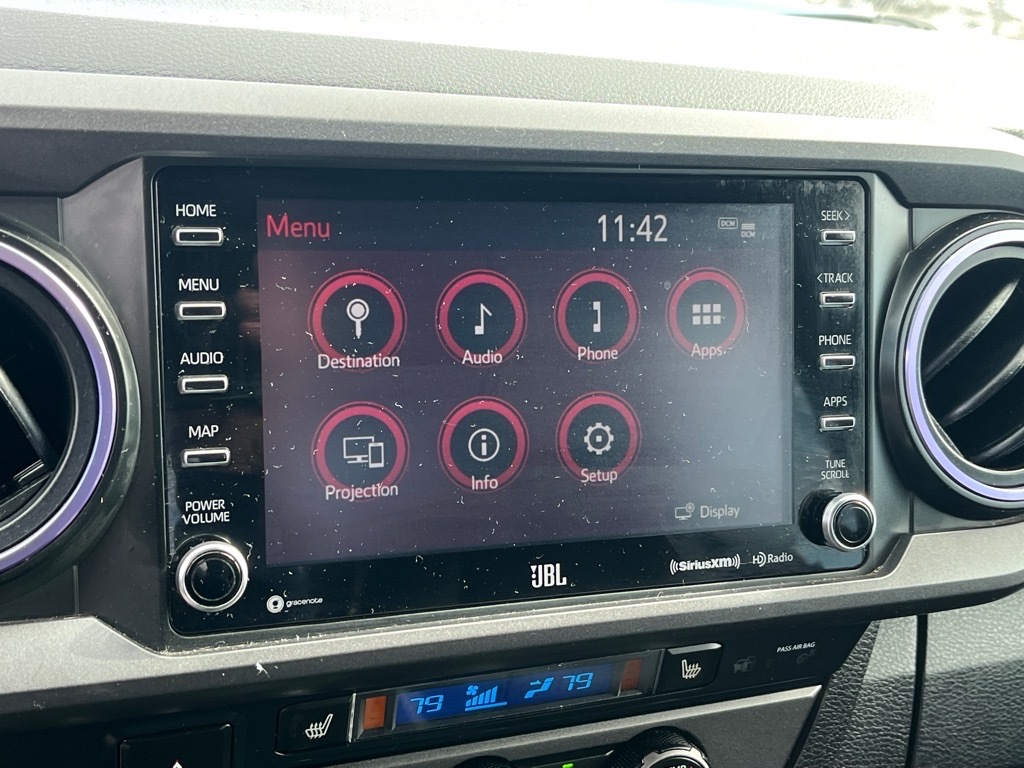 Recent Arrival! 2021 Toyota Tacoma TRD Sport V6 4D Double Cab 3.5L V6 PDI DOHC 24V LEV3-ULEV70 278hp 6-Speed Automatic 4WD **LOCAL TRADE**, 120V/400W Deck Mounted AC Power, AM/FM radio: SiriusXM, Apple CarPlay/Android Auto, Auto-Dimming Rearview Mirror w/HomeLink, Automatic Headlights, Bed Lighting Kit (TMS), Blind Spot Monitor w/Rear Cross Traffic Alert, Color-Keyed Overfenders, Door Sill Protectors (TMS), Engine Immobilizer, Exterior Parking Camera Rear, Front dual zone A/C, Heated Front Seats, Leather Seat Trim, LED Fog Lamp w/Black Bezel, Mesh Front Grille, Power Sliding Rear Window w/Privacy Glass, Power Tilt/Slide Moonroof, Rear Parking Assist Sonar, Technology Package, TRD Premium Sport Package, Wheels: 17x 7.5J Machined Alloy.