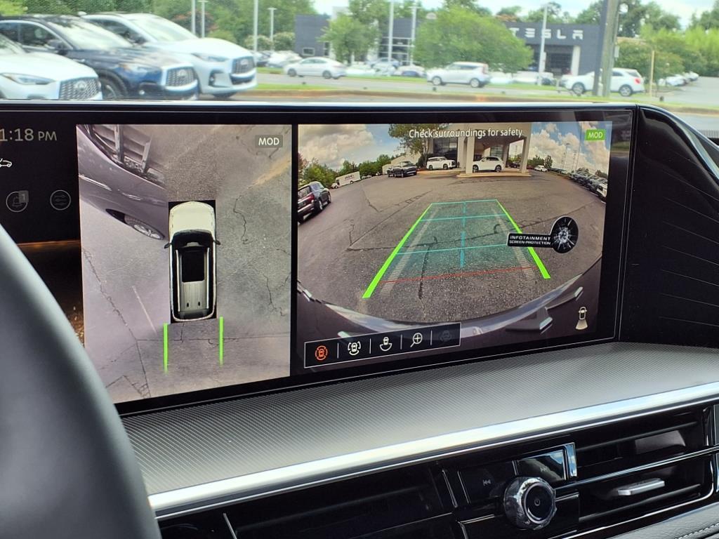automatic LED headlamps with high beam assist, front LED fog lights, navigation system, Bluetooth hands-free phone system, Around View monitor with front/rear sonar system and moving object detection, rain-sensing variable intermittent windshield wipers, automatic power door locks, remote keyless entry, HomeLink universal transceiver, Infiniti Intelligent Key with illuminated push button ignition, tire pressure monitoring system with individual tire display and full-size spare tire.