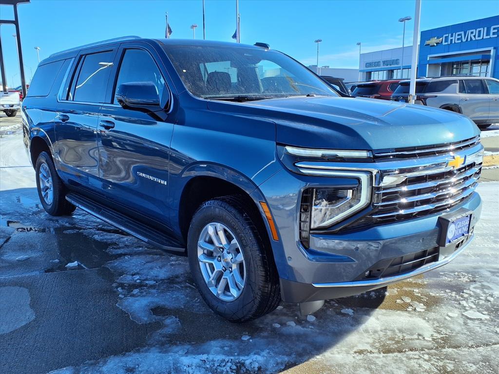Designed to deliver full-size versatility, our 2026 Chevrolet Suburban LT 4WD in bold Lakeshore Blue Metallic combines upscale style, advanced capability, and family-focused functionality for commanding presence on any road. Powered by a 5.3 Liter V8 supplying 355hp to a 10 Speed Automatic transmission backed by tow/haul mode. A limited-slip rear differential and AutoTrac transfer case help unlock rugged capability, and this Four Wheel Drive SUV sees nearly 19mpg on the highway. Our Suburban makes a major impact in the style department with LED lighting, black assist steps, bright roof rails, an aggressive grille, heated power mirrors, alloy wheels, and a hands-free liftgate. Enjoy a room with a view in our LT cabin, which rewards your family with heated leather power front seats, flexible second and third rows, a heated steering wheel, tri-zone automatic climate control, keyless access/ignition, remote start, cruise control, and 12V/120V power outlets. The intelligent infotainment system can keep you connected with a 10.2-inch touchscreen, a 12-inch driver display, connected navigation, Bose audio, WiFi compatibility, voice control, wireless Android Auto/Apple CarPlay, wireless charging, and Bluetooth. Chevrolet supports safer family adventures with automatic braking, hill-start assistance, an HD rearview camera, lane-keeping assistance, forward-collision warning, a rear-seat reminder, buckle-to-drive, and more. Smart details like those lift our Suburban LT to the next level! Save this Page and Call for Availability. We Know You Will Enjoy Your Test Drive Towards Ownership! Price includes $1,000 Finance With GY. Some restrictions apply. See dealer for details.