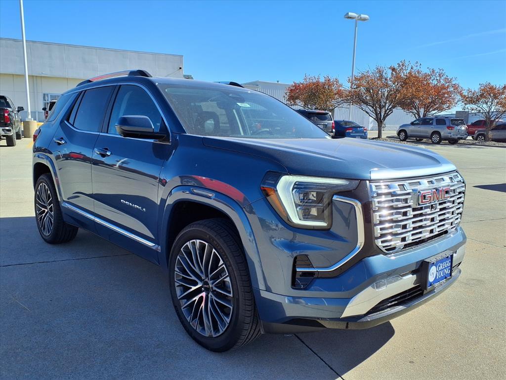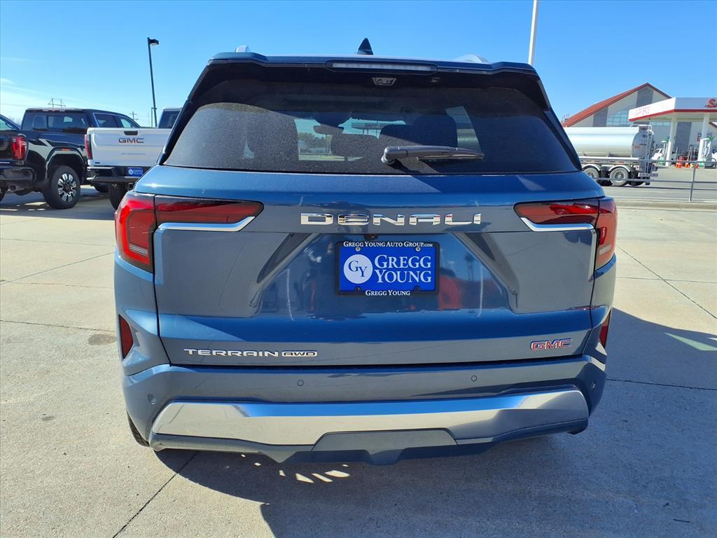 Exciting times are ahead with our 2026 GMC Terrain Denali AWD, which takes refined capability to the next level in Downpour Metallic, where luxury, performance, and allweather confidence converge. Powered by a TurboCharged 1.5 Liter 4 Cylinder delivering 175hp to a 9 Speed Automatic transmission with Electronic Precision Shift for a premium driving experience. A dedicated Denali suspension delivers composed handling even under challenging conditions, and this All Wheel Drive SUV scores nearly 28mpg on the highway. Our Terrain turns heads with signature LED lighting, fog lamps, an exclusive Denali grille, 19-inch alloy wheels, a hands-free liftgate, a sunroof, and handy roof rails. Prepare to be impressed with our Denali cabin, which includes heated leather power front seats with bold Denali logos, a heated-wrapped steering wheel, dual-zone automatic climate control, keyless access, remote start, cruise control, ambient lighting, and an 8-inch reconfigurable driver display. Bose audio lets you enjoy your favorite soundtrack as you stay connected with an 8-inch touchscreen, full-color navigation, wireless charging, WiFi compatibility, wireless Android Auto/Apple CarPlay, and Bluetooth. For safetys sake, GMC supplies a head-up display, automatic braking, lane-keeping assistance, parking sensors, blind-spot monitoring, forward collision alert, pedestrian detection, an HD rearview camera, and more. Get ready to do more daily with our dynamic Terrain Denali. Save this Page and Call for Availability. We Know You Will Enjoy Your Test Drive Towards Ownership!