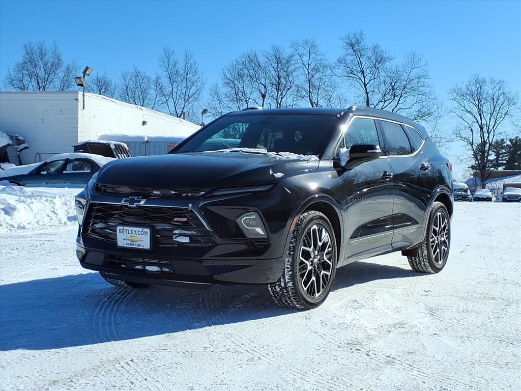 The 2026 Chevrolet Blazer RS is a state-of-the-art SUV with all wheel drive and a 3.6 liter 6 cylinder engine that is fuel injected. Boasting a jet black exterior and a luxurious black interior, this vehicle has been designed to provide comfort and convenience for the driver. It has been given a crash test rating of 5 out of 5 stars, and features such as a touch screen display, Bluetooth audio connection, blind spot sensor, hill start assist, part time four wheel drive, navigation system with voice recognition, and Bluetooth phone connectivity. The 2026 Chevrolet Blazer RS is the perfect combination of style, power, and technology. Contact Details: Betley Chevrolet, 50 N. Main Street, Derry, NH, 03038, sales@betley.com, 8886063324.