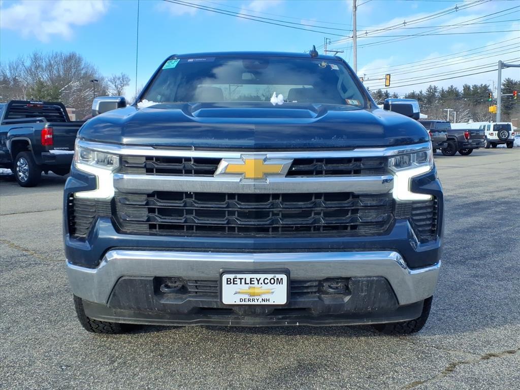 This 2023 Chevrolet Silverado 1500 LT Crew Cab 4x4 is a state-of-the-art motorcar that has been meticulously maintained. With 34,180 miles, this vehicle has been driven with care and precision, and its 2.7 liter 4 cylinder engine and turbocharged powertrain provide a smooth ride. The exterior of this car is a striking blue, and its 5 out of 5 star crash test rating makes it an ideal choice for those looking for safety and security. Features such as hill start assist, part time with on demand four wheel drive, and navigation with voice recognition make this car an ideal choice for anyone looking for a modern motorcar. Contact Details: Betley Chevrolet, 50 N. Main Street, Derry, NH, 03038, sales@betley.com, 8886063324.