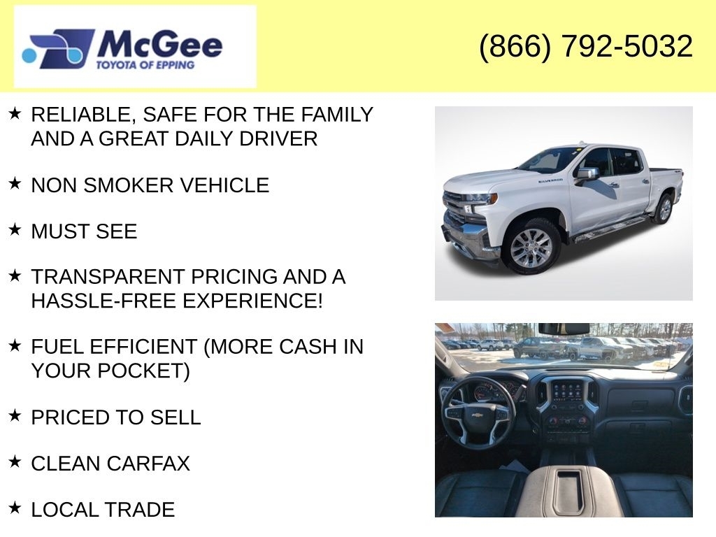 Recent Arrival! RELIABLE, SAFE FOR THE FAMILY AND A GREAT DAILY DRIVER, NON SMOKER VEHICLE, MUST SEE, TRANSPARENT PRICING AND A HASSLE-FREE EXPERIENCE!, FUEL EFFICIENT (MORE CASH IN YOUR POCKET), PRICED TO SELL, CLEAN CARFAX, LOCAL TRADE, ONE OWNER, 8-Speed Automatic, 4WD, Jet Black Leather, 10-Way Power Driver Seat w/Lumbar, 10-Way Power Passenger Seat Adjuster w/Lumbar, 12-Volt Rear Auxiliary Power Outlet, 120-Volt Bed Mounted Power Outlet, 120-Volt Instrument Panel Power Outlet, 170 Amp Alternator, 2 USB Ports (First Row), 2nd Row Heated Outboard Seats, 4.2Diagonal Color Display Driver Info Center, 6-Speaker Audio System, Advanced Trailering System, Apple CarPlay/Android Auto, Auto-Dimming Inside Rear-View Mirror, Auxiliary External Transmission Oil Cooler, Bluetooth� For Phone, Chevrolet Connected Access, Chevrolet w/4G LTE, Chrome Grille, Chrome Mirror Caps, Color-Keyed Carpeting Floor Covering, Compass, Deep-Tinted Glass, Driver Memory, Electric Rear-Window Defogger, Electrical Lock Control Steering Column, Electronic Cruise Control, EZ Lift Power Lock & Release Tailgate, Floor Mounted Console, Front Bucket Seats, Front Frame-Mounted Black Recovery Hooks, Front LED Fog Lamps, Front Rubberized Vinyl Floor Mats, HD Radio, HD Rear Vision Camera, Heated Driver & Front Passenger Seats, Heated Steering Wheel, Heavy-Duty Rear Locking Differential, Hitch Guidance, Hitch Guidance w/Hitch View, Integrated Trailer Brake Controller, Keyless Open & Start, Lane Change Alert w/Side Blind Zone Alert, Leather Wrapped Steering Wheel, LED Cargo Area Lighting, LTZ Convenience Package, LTZ Convenience Package II, LTZ Plus Package, Manual Tilt/Telescoping Steering Column, OnStar & Chevrolet Connected Services Capable, Outside Heated Power-Adjustable Mirrors, Perimeter Lighting, Power Door Locks, Power Front Passenger Windows w/Express Up/Down, Power Front Windows w/Driver Express Up/Down, Power Rear Windows w/Express Down, Power Sliding Rear Window w/Rear Defogger, Power Tailgate, Preferred Equipment Group 1LZ, Premium Bose 7-Speaker Sound System, Radio: Chevrolet Infotainment 3 Premium System, Rear Cross Traffic Alert, Rear Dual USB Charging-Only Ports, Rear Rubberized-Vinyl Floor Mats, Rear Wheelhouse Liners, Remote Vehicle Starter System, Safety Package, SiriusXM Radio, Steering Wheel Audio Controls, Theft Deterrent System (Unauthorized Entry), Trailer Tire Pressure Monitor System, Trailering Package, Ultrasonic Front & Rear Park Assist, Universal Home Remote, Up-Le