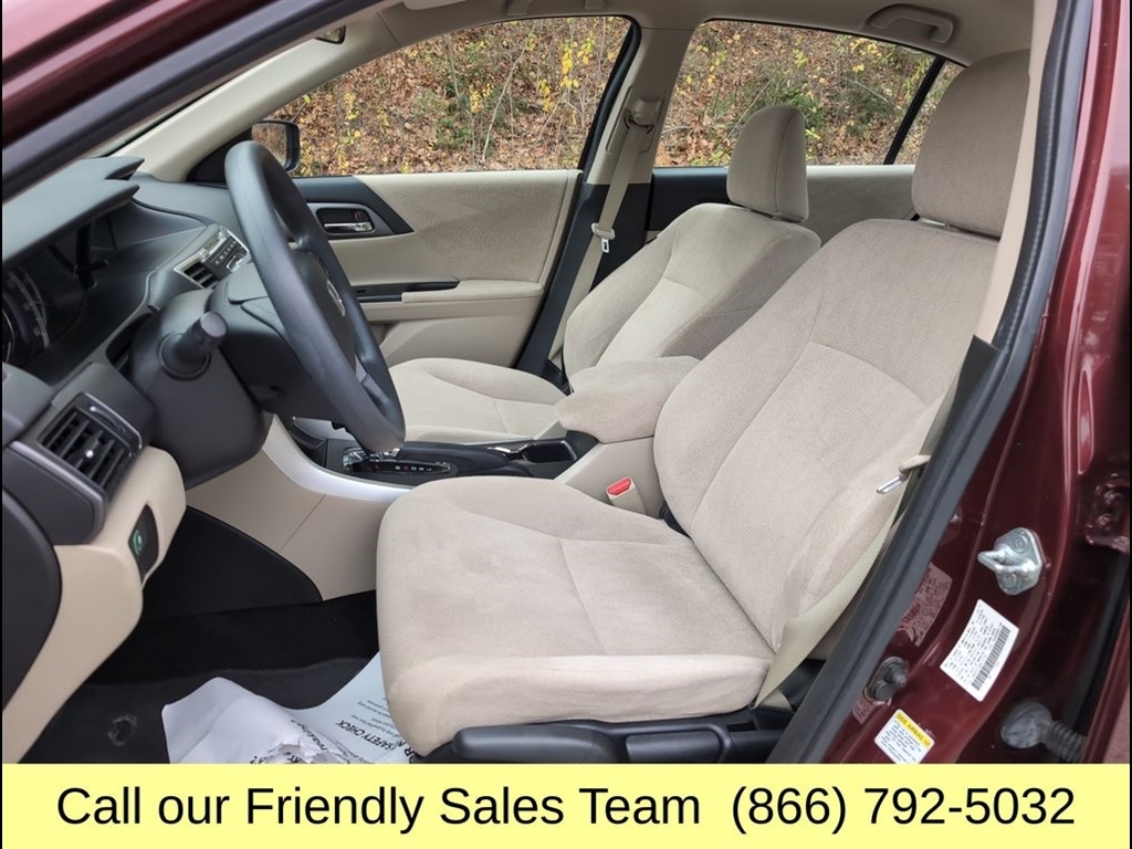 RELIABLE, SAFE FOR THE FAMILY AND A GREAT DAILY DRIVER, NON SMOKER VEHICLE, MUST SEE, TRANSPARENT PRICING AND A HASSLE-FREE EXPERIENCE!, FUEL EFFICIENT (MORE CASH IN YOUR POCKET), PRICED TO SELL, BRAND NEW CABIN AIR FILTER, BRAND NEW ENGINE AIR FILTER, FRESH ENGINE OIL & FILTER, INSTALLED BOTH FRONT WIPER BLADES, ROTATED & BALANCED ALL TIRES, PERFORMED BRAKE FLUID SERVICE, VALVE COVER GASKET REPLACEMENT COMPLETED, TIMING COVER GASKET COMPLETED, REAR MAIN SEAL GASKET COMPLETED, WE HAVE SPENT $2,932.63 TO MAKE SURE THIS LOW MILEAGE HONDA ACCORD IS MECHANICALLY SOUND AND SAVING YOU $$ IN THE FUTURE., TIRES AND BRAKES ARE IN GREAT CONDITION., 2013 Honda Accord LX Reliable, Fuel-Efficient, and Comfortable With Proven Honda Quality The 2013 Honda Accord LX delivers outstanding value, great fuel economy, and long-lasting reliabilitymaking it one of the top choices in the midsize sedan segment. Powered by a 2.4L 4-cylinder engine paired with a smooth CVT or 6-speed manual (depending on configuration), the Accord LX provides excellent MPG, responsive performance, and a comfortable ride ideal for commuting and everyday driving. Inside, the Accord LX features a spacious, well-designed cabin with cloth seating, dual-zone automatic climate control, Bluetooth HandsFreeLink, a rearview camera, USB input, and Hondas intuitive infotainment display. High-quality materials and supportive seating give the interior a premium feel, offering comfort for both short drives and long trips. Safety is a major strength thanks to Hondas advanced engineering and features like stability control, anti-lock brakes, multiple airbags, and excellent crash-test ratingsproviding peace of mind for families and first-time buyers. With its strong resale value, efficient powertrain, and reputation for going hundreds of thousands of miles, the 2013 Honda Accord LX remains one of the most dependable and affordable sedans on the market., Ivory w/Cloth Seat Trim, All Season Protection Package, All-Season Floor Mats, Splash Guards, Trunk Tray. At McGee Toyota Of Epping we want you to know that all our vehicles are priced at a competitive value position to the market. We use an independent 3rd party software to research internet listings on all vehicles in the market so we can ensure that our prices are the most competitive out there. We do this simply so people choose us when they start searching for their next car. 2013 Honda Accord LX 4D Sedan Basque Red Pearl II FWD CVT 2.4L I4 DOHC i-VTEC 16V McGe