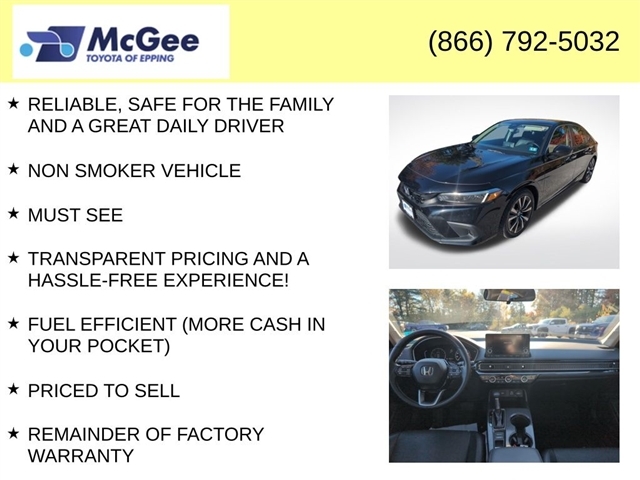 Recent Arrival! RELIABLE, SAFE FOR THE FAMILY AND A GREAT DAILY DRIVER, NON SMOKER VEHICLE, MUST SEE, TRANSPARENT PRICING AND A HASSLE-FREE EXPERIENCE!, FUEL EFFICIENT (MORE CASH IN YOUR POCKET), PRICED TO SELL, REMAINDER OF FACTORY WARRANTY, FANTASTIC SERVICE HISTORY!, ONE OWNER, NEEDS NOTHING TO PASS STATE INSPECTION, BRAND NEW CABIN AIR FILTER, BRAND NEW ENGINE AIR FILTER, FRESH ENGINE OIL & FILTER, MOUNT & BALANCED 4-NEW TIRES, PERFORMED 4-WHEEL COMPUTERIZED ALIGNMENT, The EX-L trim means youre getting more than the basic model youll typically find leather-trimmed seats, upgraded infotainment, more refined cabin materials, and added convenience features. For people who spend a lot of time driving (commutes, errands, rides with family/friends), this makes a big difference in daily satisfaction., Black w/Leather Seat Trim. At McGee Toyota Of Epping we want you to know that all our vehicles are priced at a competitive value position to the market. We use an independent 3rd party software to research internet listings on all vehicles in the market so we can ensure that our prices are the most competitive out there. We do this simply so people choose us when they start searching for their next car. CARFAX One-Owner. 2023 Honda Civic EX-L 4D Hatchback Crystal Black Pearl FWD CVT 1.5L I4 DOHC 16V McGee Toyota is a Family-Owned Business and we enjoy assisting all of our guests buying their next vehicle!