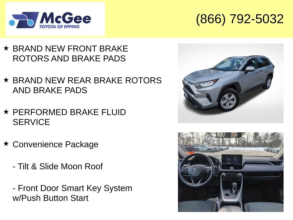 Recent Arrival! RELIABLE, SAFE FOR THE FAMILY AND A GREAT DAILY DRIVER, NON SMOKER VEHICLE, MUST SEE, TRANSPARENT PRICING AND A HASSLE-FREE EXPERIENCE!, FUEL EFFICIENT (MORE CASH IN YOUR POCKET), PRICED TO SELL, CLEAN CARFAX, LOCAL TRADE, ONE OWNER, $2,929.22 WAS SPENT IN PROFESSIONAL SHOP WORK SO THIS VEHICLE MEETS OUR STANDARDS FOR SAFETY, DEPENDABILITY,, BRAND NEW CABIN AIR FILTER, BRAND NEW ENGINE AIR FILTER, FRESH ENGINE OIL & FILTER, INSTALLED BOTH FRONT WIPER BLADES, INSTALLED REAR WIPER BLADE, BRAND NEW FRONT BRAKE ROTORS AND BRAKE PADS, BRAND NEW REAR BRAKE ROTORS AND BRAKE PADS, PERFORMED BRAKE FLUID SERVICE, AWD, Black w/Fabric Seat Trim, 3 Spoke Leather Heated Steering Wheel, Anti-Theft System, Convenience Package, Front Door Smart Key System w/Push Button Start, Front Seat Heating, Radio: Audio Plus, Rain Sensing Front Wipers, Tilt & Slide Moon Roof, Wiper Deicer, XLE Grade Weather Package. At McGee Toyota Of Epping we want you to know that all our vehicles are priced at a competitive value position to the market. We use an independent 3rd party software to research internet listings on all vehicles in the market so we can ensure that our prices are the most competitive out there. We do this simply so people choose us when they start searching for their next car. CARFAX One-Owner. Clean CARFAX. 2021 Toyota RAV4 XLE 4D Sport Utility Ruby Flare Pearl AWD 8-Speed Automatic 2.5L 4-Cylinder DOHC Dual VVT-i McGee Toyota is a Family-Owned Business and we enjoy assisting all of our guests buying their next vehicle!