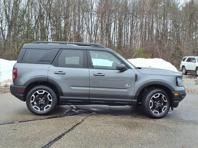 Recent Arrival! 3.80 Axle Ratio, 4-Wheel Disc Brakes, 6 Speakers, ABS brakes, Air Conditioning, Alloy wheels, AM/FM radio: SiriusXM, AM/FM Stereo, Auto High-beam Headlights, Auto-dimming Rear-View mirror, Automatic temperature control, Brake assist, Compass, Delay-off headlights, Driver door bin, Driver vanity mirror, Dual front impact airbags, Dual front side impact airbags, Electronic Stability Control, Emergency communication system: SYNC 3 911 Assist, Equipment Group 300A, Evasive Steering Assist, Ford Co-Pilot360 Assist , Four wheel independent suspension, Front anti-roll bar, Front Bucket Seats, Front Center Armrest, Front dual zone A/C, Front fog lights, Front License Plate Bracket, Front reading lights, Fully automatic headlights, HD Radio, Heated door mirrors, Heated front seats, Heated steering wheel, Illuminated entry, Intelligent Adaptive Cruise Control w/Stop & Go, Knee airbag, Low tire pressure warning, Occupant sensing airbag, Outside temperature display, Overhead airbag, Overhead console, Panic alarm, Passenger door bin, Passenger vanity mirror, Power door mirrors, Power driver seat, Power passenger seat, Power steering, Power windows, Premium-Trimmed Heated Sport Contour Bucket Seats, Radio data system, Rain sensing wipers, Rear anti-roll bar, Rear Parking Sensors, Rear reading lights, Rear seat center armrest, Rear window defroster, Rear window wiper, Remote keyless entry, Security system, SiriusXM, Speed control, Speed-sensing steering, Speed-Sensitive Wipers, Split folding rear seat, Steering wheel mounted audio controls, SYNC 3 Communications & Entertainment System, Tachometer, Tech Package, Telescoping steering wheel, Tilt steering wheel, Traction control, Trip computer, Universal Garage Door Opener (UGDO), Variably intermittent wipers, Voice-Activated Touchscreen Navigation System, Wheels: 18Ebony Black-Painted Aluminum, Wireless Charging Pad. Carbonized Gray Metallic 2024 Ford Bronco Sport Outer Banks 4WD 8-Speed Automatic 1.5L EcoBoost 25/29 City/Highway MPG At the end of the day, what we want most is to see you happy in your new car. We figure it doesnt matter how nicely youre treated if you just cant find the car you want. The good news is that there are two dealerships in our family, making for one of the largest inventories in New Hampshire. With a selection like ours, were very likely to see that happy face. Fully Loaded isnt optional; its a standard of how we operate. From our accommodating test drives to our innovative pre