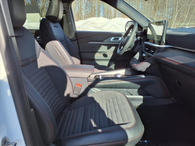 Star White Metallic Tri-Coat 2025 Ford Explorer ST-Line 4WD 10-Speed Automatic 2.3L EcoBoost I-4 4WD, 10 Speakers, 110V/150W AC Power Outlet, 2nd Row Captains Chairs w/E-Z Entry & Armrest, 2nd Row Heated Seats, 3.58 Non-Limited Slip Rear Axle, 3rd row seats: bench, 4-Wheel Disc Brakes, ABS brakes, Air Conditioning, Alloy wheels, AM/FM radio: SiriusXM, Ambient Lighting, Apple CarPlay/Android Auto, Auto High-beam Headlights, Auto-Dimming Interior Rear-View Mirror, Automatic temperature control, Black Painted Roof, Brake assist, Bumpers: body-color, Compass, Delay-off headlights, Driver door bin, Driver vanity mirror, Dual front impact airbags, Dual front side impact airbags, Electronic Stability Control, Emergency communication system: 911 Assist, Equipment Group 300A Standard Package, Exterior Parking Camera Rear, Four wheel independent suspension, Front anti-roll bar, Front Bucket Seats, Front Center Armrest, Front dual zone A/C, Front fog lights, Front License Plate Bracket, Front reading lights, Fully automatic headlights, Garage door transmitter, Heated ActiveX Seat Material Cap Chairs, Heated door mirrors, Heated front seats, Heated steering wheel, Heated Unique Cloth Captains Chairs, Illuminated entry, Knee airbag, Leather steering wheel, Low tire pressure warning, Navigation System, Occupant sensing airbag, Outside temperature display, Overhead airbag, Overhead console, Panic alarm, Panoramic Vista Roof w/Power Shade, Passenger door bin, Passenger vanity mirror, Performance Brakes, Power door mirrors, Power driver seat, Power Liftgate, Power passenger seat, Power steering, Power Tilt/Telescoping Steering Column, Power windows, Power-Folding Sideview Mirrors w/Autofold, Premium Package, Radio: B&O Sound System by Bang & Olufsen, Rain sensing wipers, Rain-Sensing Wipers (Front Only), Rear air conditioning, Rear anti-roll bar, Rear reading lights, Rear window defroster, Rear window wiper, Red Painted Perf Front & Rear Brake Calipers, Remote keyless entry, Security system, Speed control, Speed-sensing steering, Speed-Sensitive Wipers, Split folding rear seat, Spoiler, ST-Line Street Pack, Steering wheel mounted audio controls, Tachometer, Telescoping steering wheel, Tilt steering wheel, Traction control, Trip computer, Variably intermittent wipers, Wheels: 21Magnetite-Painted Aluminum, Wireless Charging Pad. Recent Arrival! 20/27 City/Highway MPG Price includes: $1500 - Retail Customer Cash. Exp. 03/31/2025