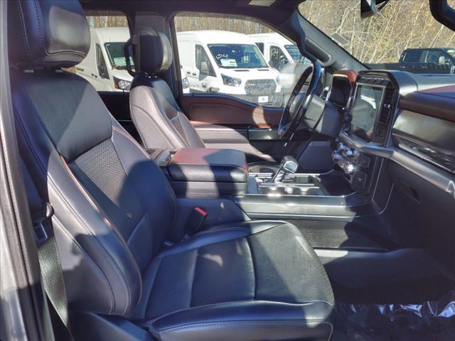 3.5L PowerBoost Full-Hybrid V6, 4WD, 2nd Row Heated Seats, 360 Degree Camera, 4-Wheel Disc Brakes, 6Chrome Running Board, 7 Speakers, ABS brakes, Accent-Color Angular Step Bars, Adjustable pedals, Air Conditioning, Alloy wheels, AM/FM radio: SiriusXM with 360L, Auto High-beam Headlights, Auto-dimming Rear-View mirror, Automatic temperature control, Body-Color Front & Rear Bumpers, Box Side Decals, Brake assist, Chrome 2-Bar Grille w/4 Minor Bars, Chrome Door & Tailgate Handles w/Body-Color Bezel, Chrome Single-Tip Exhaust, Chrome Skull Caps on Exterior Mirrors, Class IV Trailer Hitch Receiver, Compass, Connected Built-In Navigation, Dark 2-Bar & 1 Minor Bar Style Grille, Delay-off headlights, Driver door bin, Driver vanity mirror, Dual front impact airbags, Dual front side impact airbags, Electronic Locking w/3.73 Axle Ratio, Electronic Stability Control, Emergency communication system: SYNC 4 911 Assist, Equipment Group 502A High, Evasive Steering Assist, Extended Range 36 Gallon Fuel Tank, Exterior Parking Camera Rear, Ford Co-Pilot360 Assist 2.0, Front anti-roll bar, Front Center Armrest w/Storage, Front dual zone A/C, Front fog lights, Front reading lights, Front wheel independent suspension, Fully automatic headlights, GVWR: 7,350 lbs Payload Package, Heated door mirrors, Heated front seats, Heated Steering Wheel, Illuminated entry, Integrated Trailer Brake Controller, Intelligent Adaptive Cruise Control w/Stop & Go, Interior Work Surface, Intersection Assist, Lariat Chrome Appearance Package, Lariat Sport Appearance Package, Leather-Trimmed Bucket Seats, LED Projector w/Dynamic Bending Headlamps, Low tire pressure warning, Max Trailer Tow Package, Memory seat, Occupant sensing airbag, Onboard 400W Outlet, Outside temperature display, Overhead airbag, Overhead console, Panic alarm, Passenger door bin, Passenger vanity mirror, Pedal memory, Power door mirrors, Power driver seat, Power Glass Sideview Mirr w/Chrome Skull Caps, Power passenger seat, Power steering, Power Tilt/Telescoping Steering Column w/Memory, Power windows, Pro Trailer Backup Assist, Radio data system, Radio: AM/FM SiriusXM w/360L, Radio: B&O Sound System by Bang & Olufsen, Rain-Sensing Wipers, Rear reading lights, Rear seat center armrest, Rear step bumper, Rear window defroster, Remote keyless entry, Security system, Speed control, Speed Sign Recognition, Speed-sensing steering, Split folding rear seat, Steering wheel mounted audio controls, SYNC 4 w/Enhanced Voice Recognition, Ta