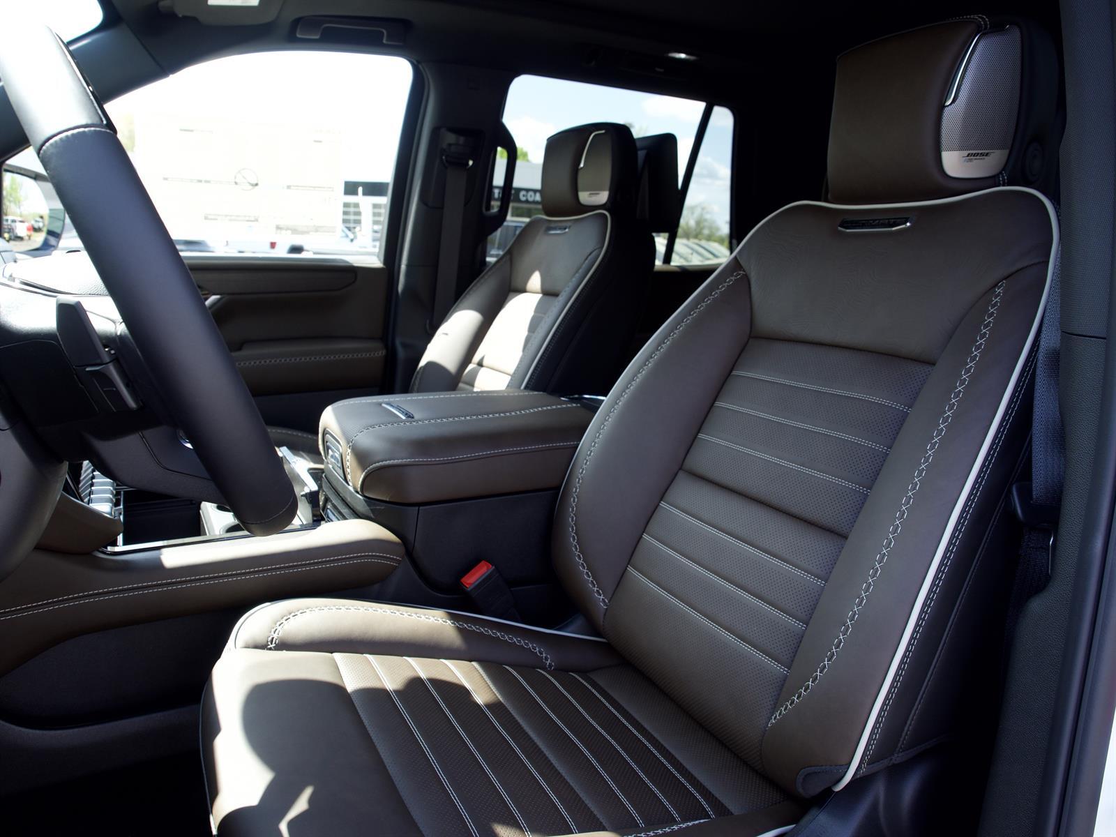 Heated Leather Seats, NAV, Sunroof, 3rd Row Seat, Panoramic Roof, 4x4, Alloy Wheels, Tow Hitch, AUDIO SYSTEM, 16.8 DIAGONAL PREMIUM GMC INFOTAINMENT SYSTEM. Summit White exterior and Woodland Mahogany interior, Denali Ultimate trim. KEY FEATURES INCLUDELeather Seats, Third Row Seat, Sunroof, Panoramic Roof, 4x4 GMC Denali Ultimate with Summit White exterior and Woodland Mahogany interior features a 8 Cylinder Engine with 420 HP at 5600 RPM*. OPTION PACKAGESENGINE, 6.2L ECOTEC3 V8 with Dynamic Fuel Management, Direct Injection and Variable Valve Timing, includes aluminum block construction (420 hp [313 kW] @ 5600 rpm, 460 lb-ft of torque [624 Nm] @ 4100 rpm) (STD), TRANSMISSION, 10-SPEED AUTOMATIC electronically controlled with overdrive, includes Traction Select System including tow/haul (STD), AUDIO SYSTEM, 16.8 DIAGONAL PREMIUM GMC INFOTAINMENT SYSTEM with high contrast display and local backlight dimming, with Google built-in compatibility, including navigation capability, color touch-screen, multi-touch display, connected apps, personalized profiles for each drivers settings, and Natural Voice Recognition (STD). Horsepower calculations based on trim engine configuration. Please confirm the accuracy of the included equipment by calling us prior to purchase.